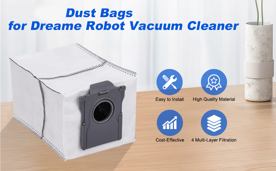سعة كبيرة: مصممة بسعة كبيرة 3.2 لتر لحمل المزيد من الحطام، كل كيس مكنسة كهربائية يدوم لمدة تصل إلى 65 يومًا من التنظيف بدون استخدام اليدين، مما يقلل من تكرار الاستبدال ويوفر وقتك في الصيانة مع الحفاظ على منظف الروبوت الخاص بك يعمل بأعلى أداء. إنه مثالي لاحتياجات التنظيف الخاصة بك.