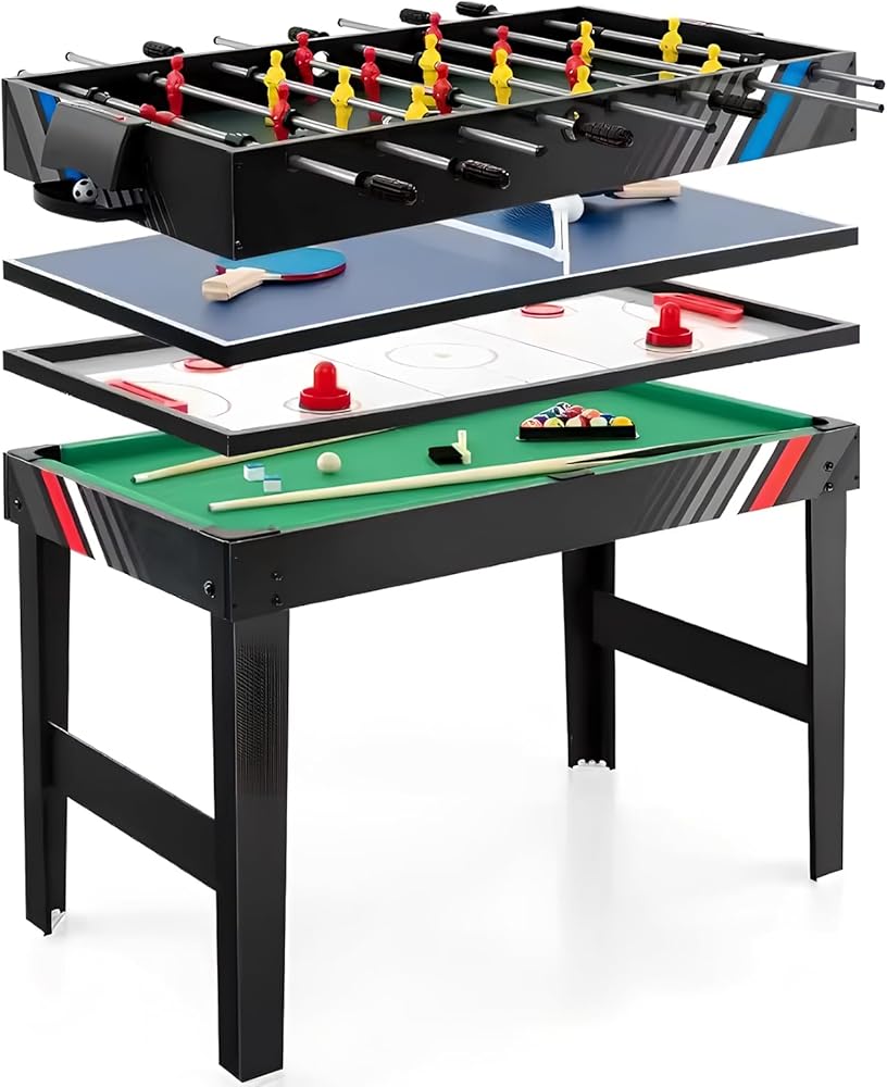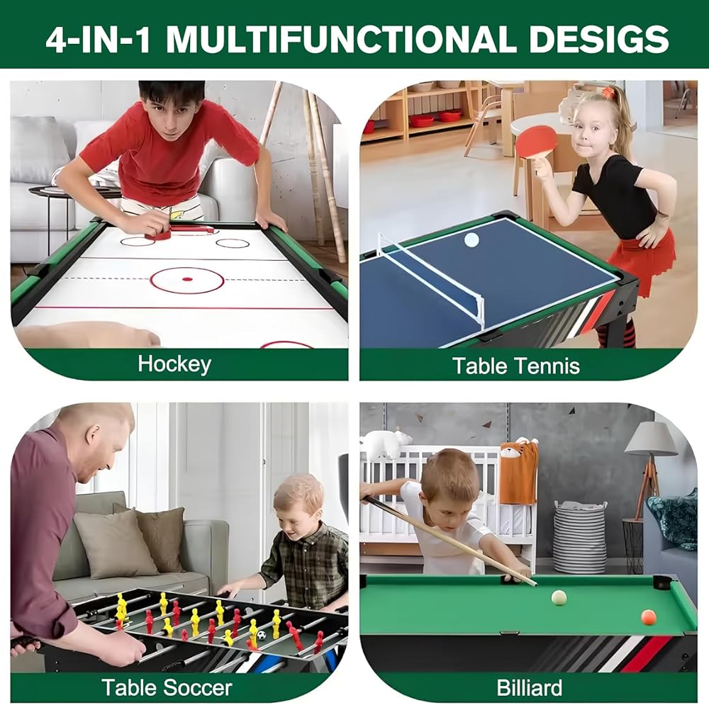 Comprehensive Game Experience: The 4-in-1 multi game table is designed to fulfill various entertainment desires, doubling as billiards, foosball, hockey, and pong tables. Its stackable design facilitates swift transitions between games, ensuring continuous enjoyment for all ages.