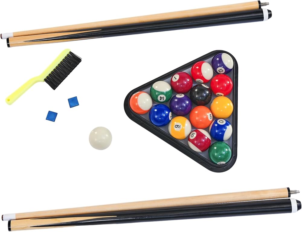 Includes billiard balls cues ping pong paddles balls net set and installation tools
