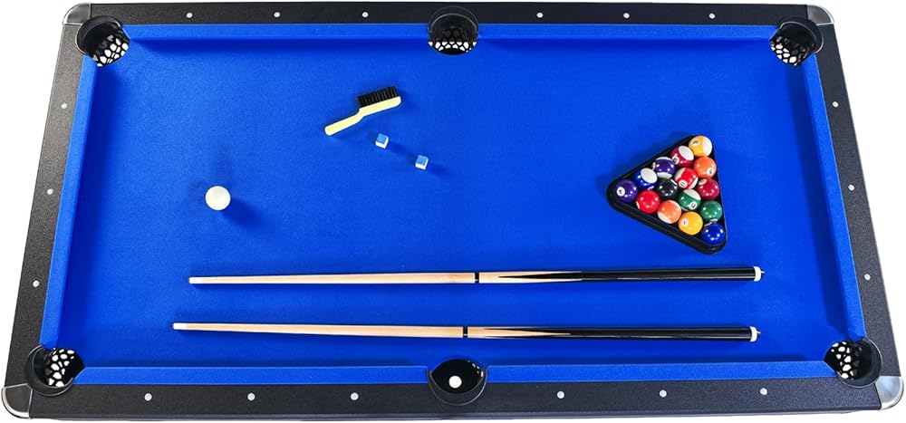ELEGANT MODERN APPEARANCE: The pool table showcases a stylish black and blue design with smooth melamine finish that matches any home decor. The classic color combination and clean lines add a sophisticated touch to your game area, making it a great centerpiece for parties, festivals, and family nights.