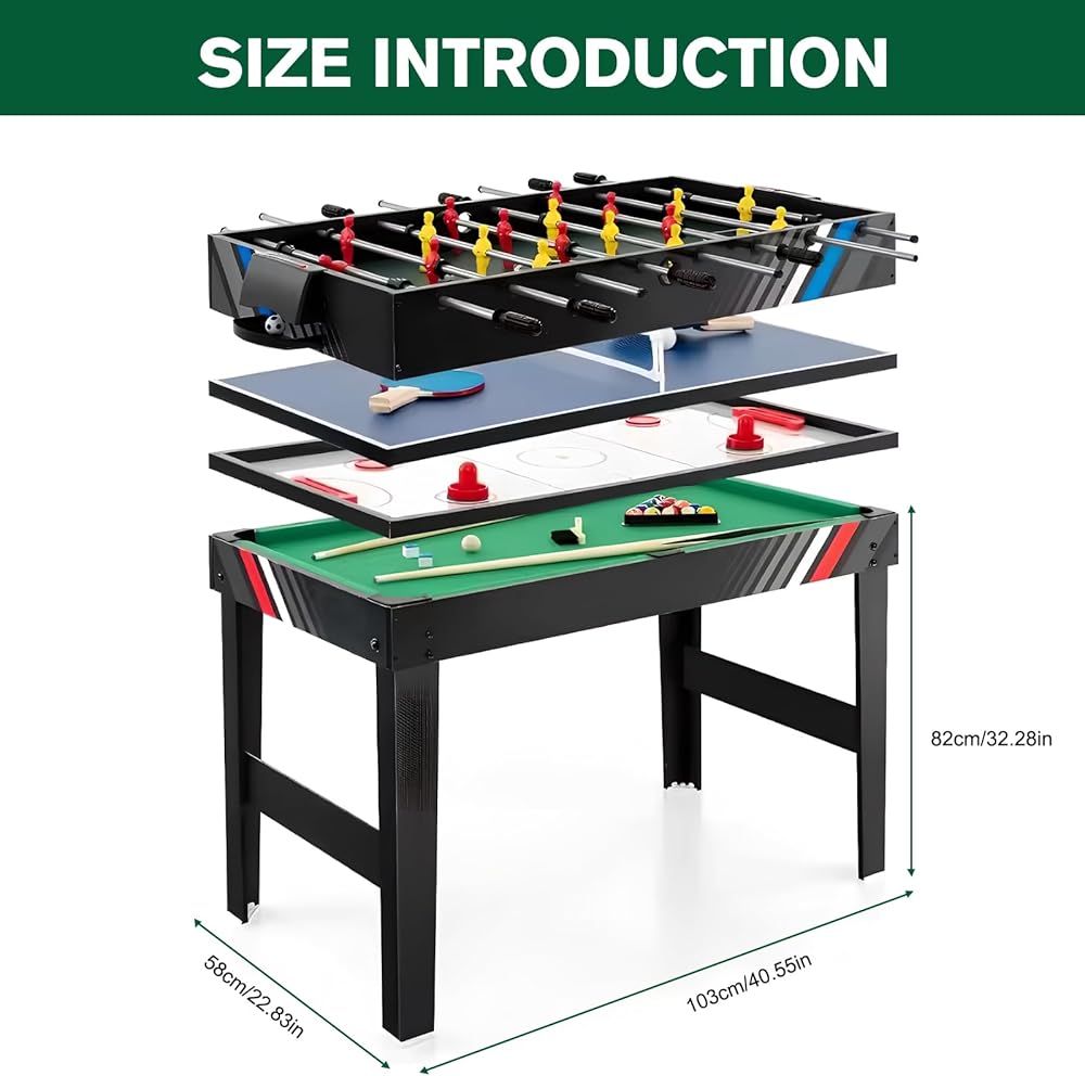 Comprehensive Game Experience: The 4-in-1 multi game table is designed to fulfill various entertainment desires, doubling as billiards, foosball, hockey, and pong tables. Its stackable design facilitates swift transitions between games, ensuring continuous enjoyment for all ages.