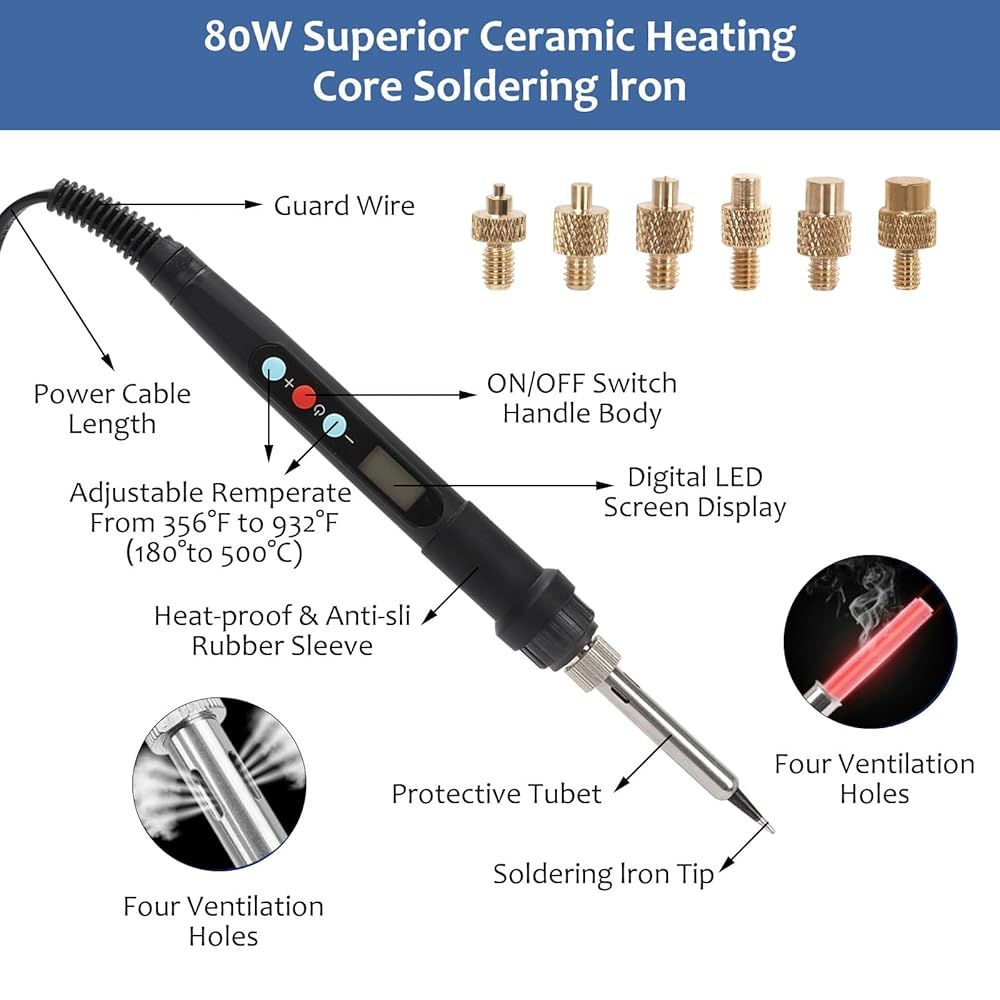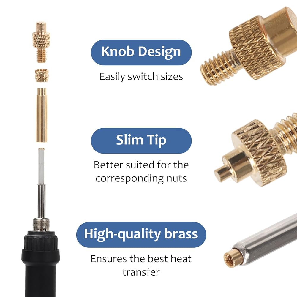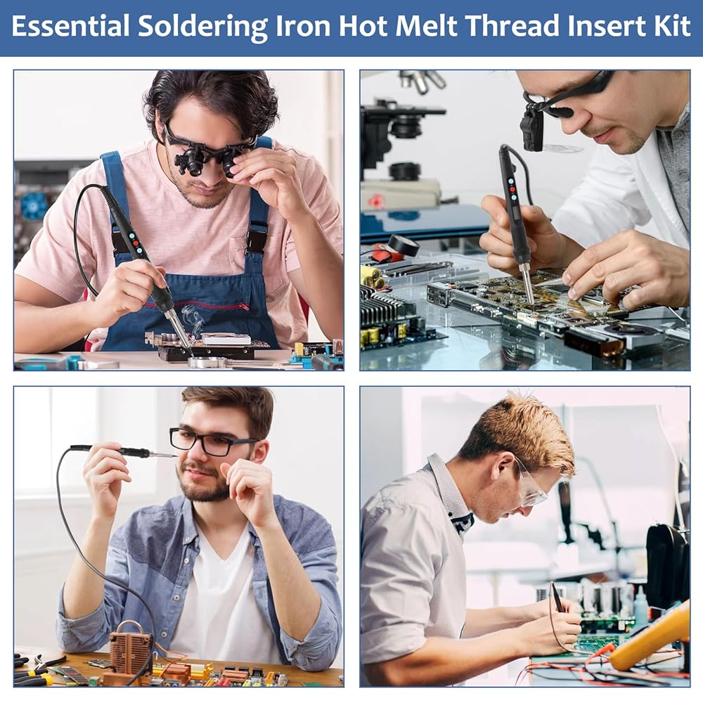Built to Last: Corrosion-resistant brass inserts ensure threads withstand repeated use, while the ergonomic soldering iron provides comfort during extended sessions.