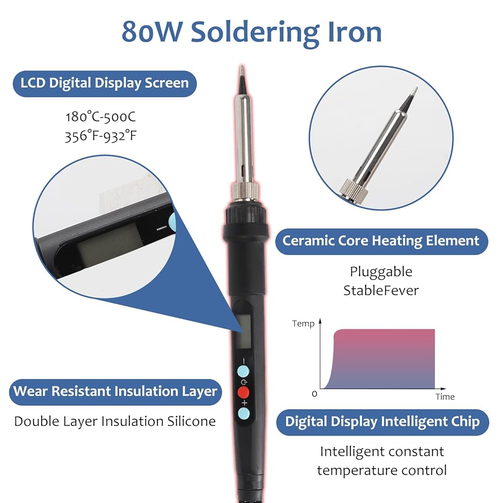 Effortless Installation: The 60W digital soldering iron offers precise temperature control, allowing you to melt plastic smoothly around threaded inserts without warping or cracking.