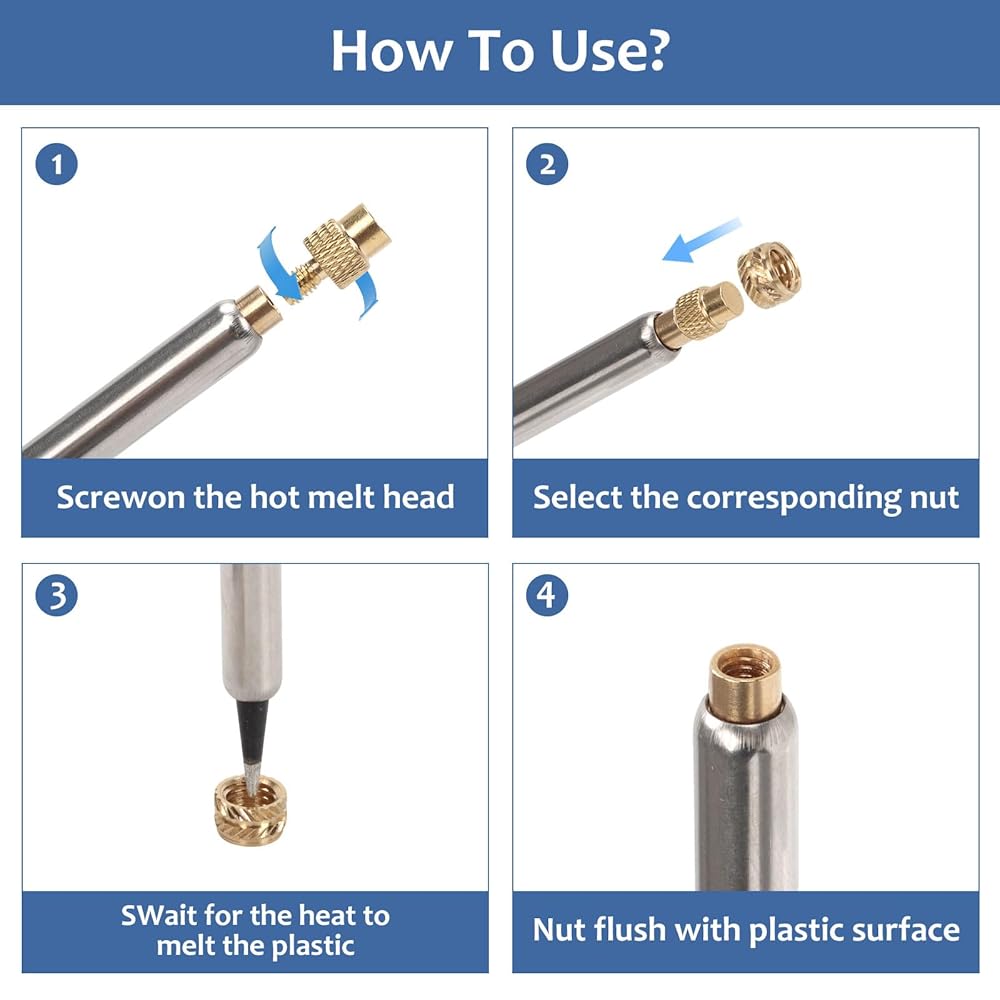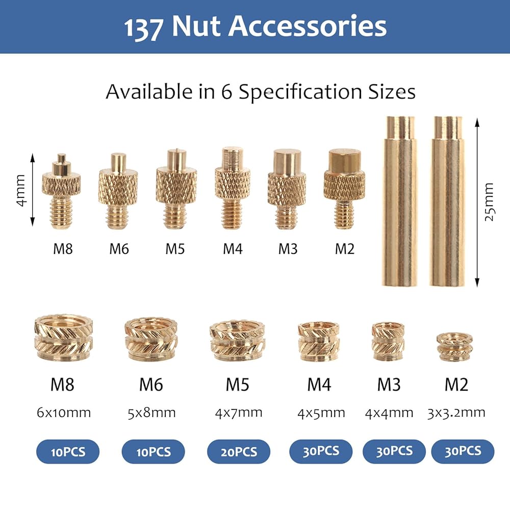 Wide-Range Compatibility: From delicate M2 inserts for miniature models to heavy-duty M8 inserts for structural repairs, this kit handles everything from 3D printing prototypes to automotive plastic fixes.