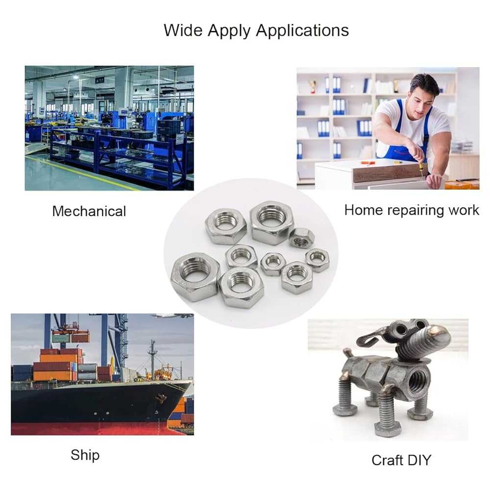 Wide applications:These Hex Nuts Assortment Kit Serves a wide range of use and for professionals, amateurs, landlords, repairmen, other craft DIY . These screws nut are perfect to replace broken and missing hexagonal nut.