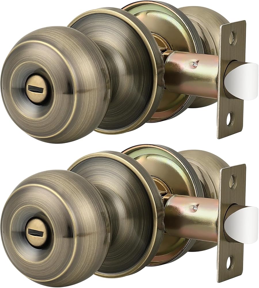 Probrico 6 حزمة مقابض باب الخصوصية قفل الداخلية غرفة نوم أبواب الحمامات مقبض العتيقة النحاس الكرة المستديرة بدون مفتاح Lockset in Kuwait
