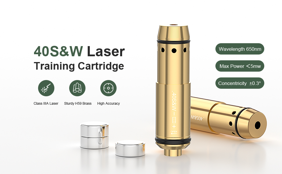 سطوع عالي باللون الأحمر - الليزر من الفئة III A، الطول الموجي 650 نانومتر، الطاقة أقل من 5 ميجاوات. تحتوي خرطوشة التدريب 40S&W هذه على شعاع ساطع من 15 إلى 100 ياردة، وتغطي كلا من التدريب الدقيق الأساسي والمتوسط المدى. يمكن للمبتدئين أيضًا استخدامه بسهولة.