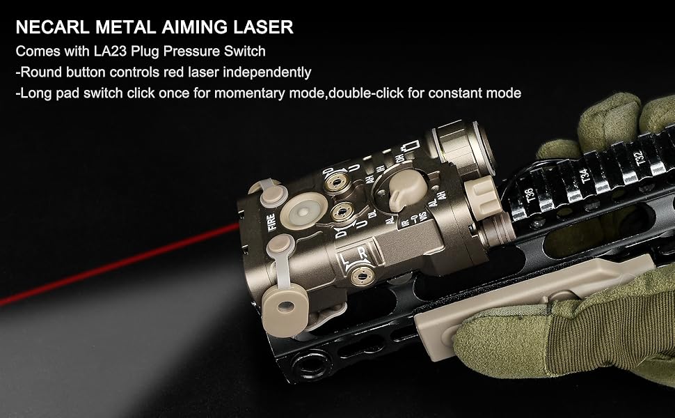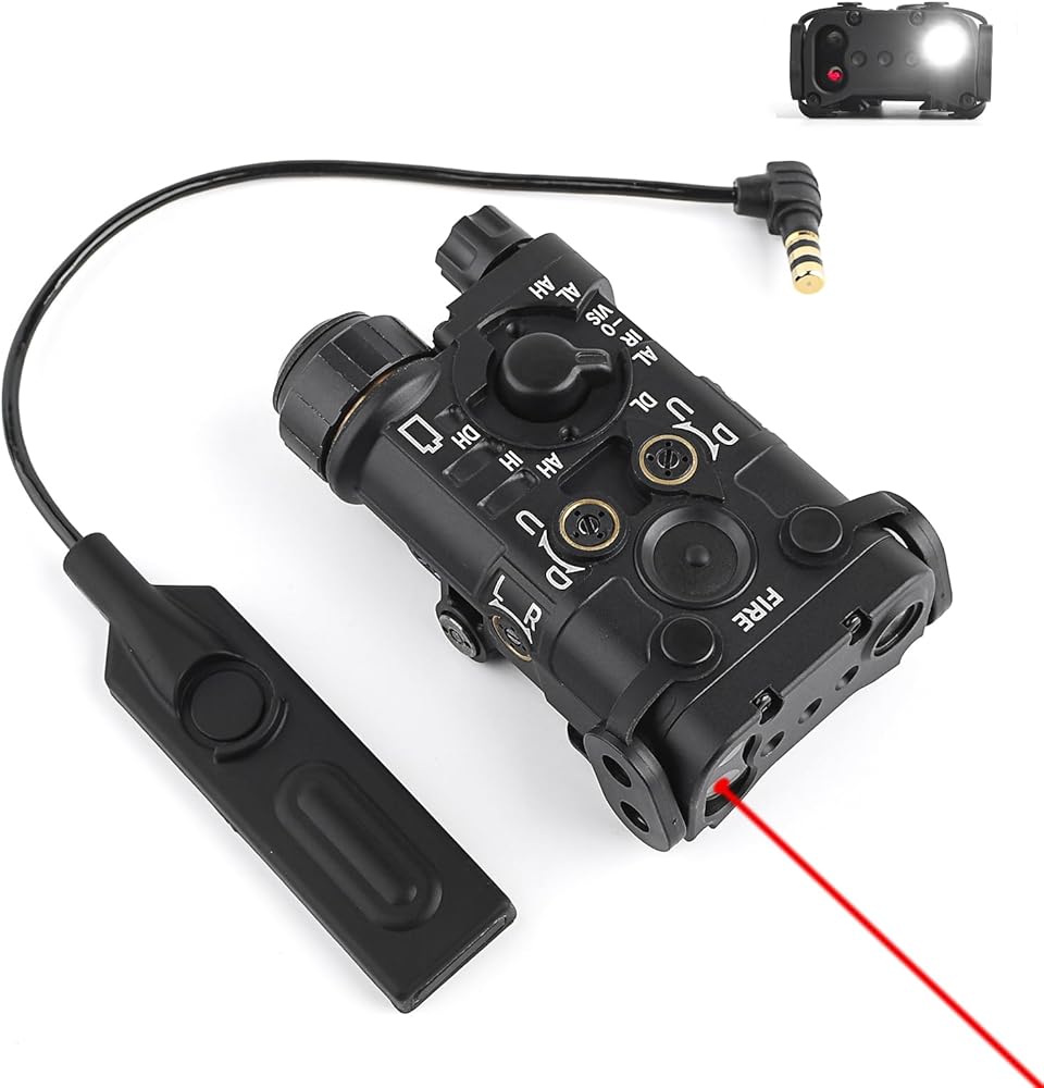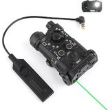 Airsoft ترقية معدنية تكتيكية PEQ تهدف إلى رؤية الليزر مع مفتاح الضغط المزدوج LA23، 8 أوضاع مع ضوء أحمر/أخضر + IR + أبيض مع ضبط السطوع، مناسب لسكك Picatinny مقاس 20 مم AEG GBB CQB