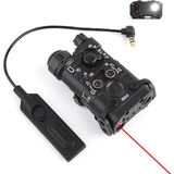 جهاز رؤية ليزر أحمر Airsoft PEQ مع كثافة شعاع آمنة/طول موجي: ذروة 3 ميجاوات، الفئة IIIA. مصباح LED أبيض بقوة 150 لومن