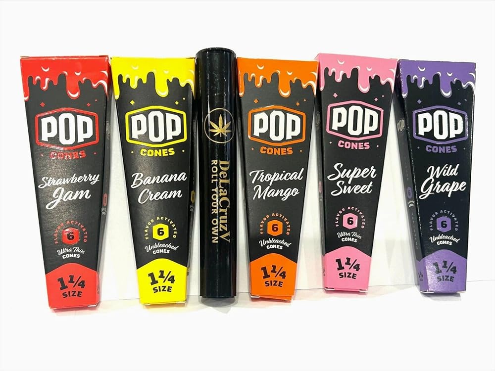 مخاريط بوب كونز بنكهة 1 1/4 (سوبر سويت، مربى الفراولة، كريمة الموز، مانجو استوائي، عنب بري) 5 عبوات من 6 مخاريط مع أنبوب ديلاكوزفي.