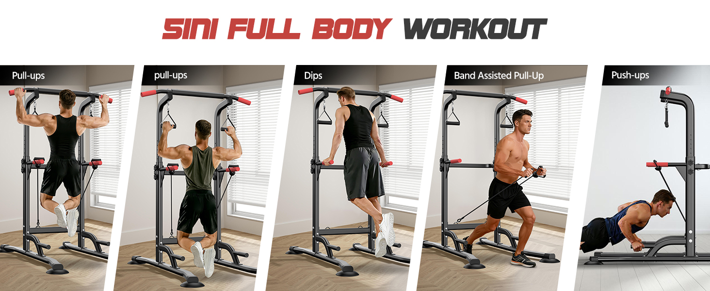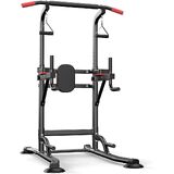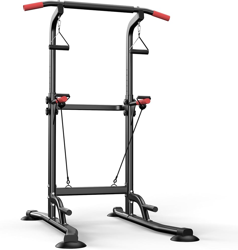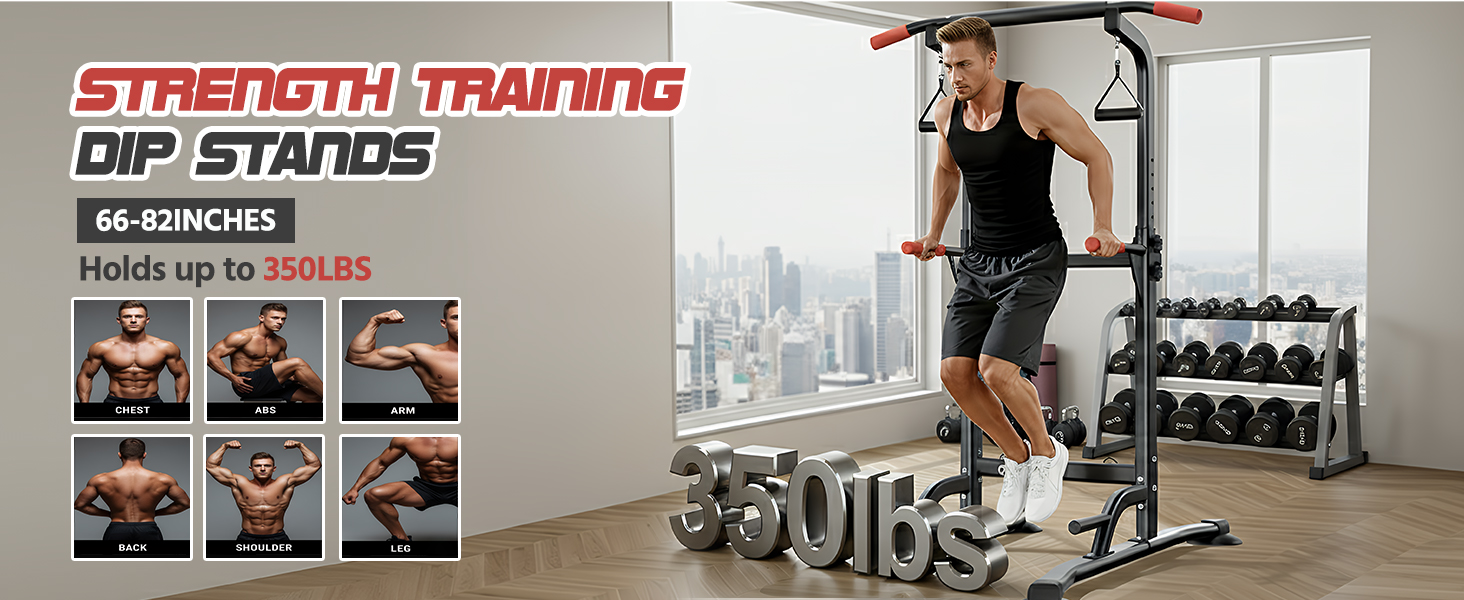 قضيب سحب باور تاور قائم بذاته مع أشرطة مقاومة، محطة غمس من سبائك الصلب شديدة التحمل بوزن 350 رطل لتدريبات القوة في صالة الألعاب الرياضية المنزلية، معدات تمرين بارتفاع قابل للتعديل