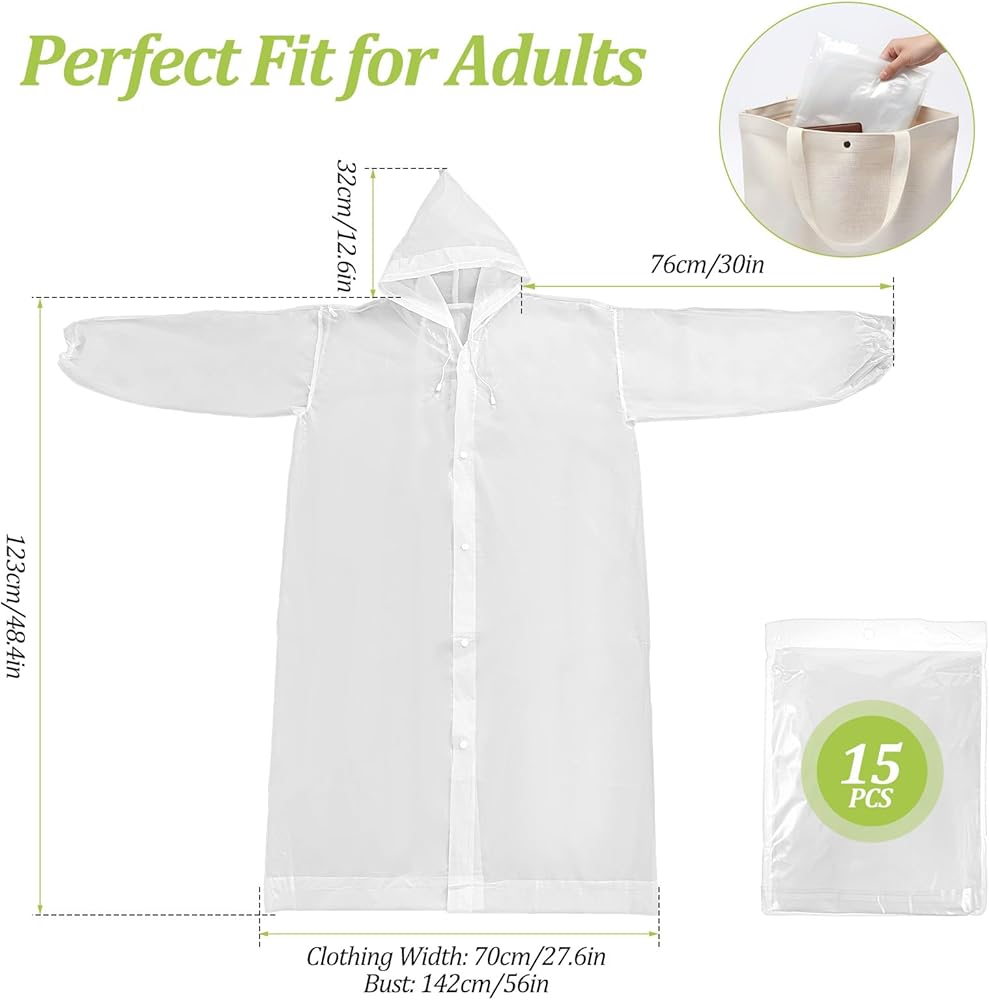 Package List: 15pcs EVA Rain Ponchos for Adults