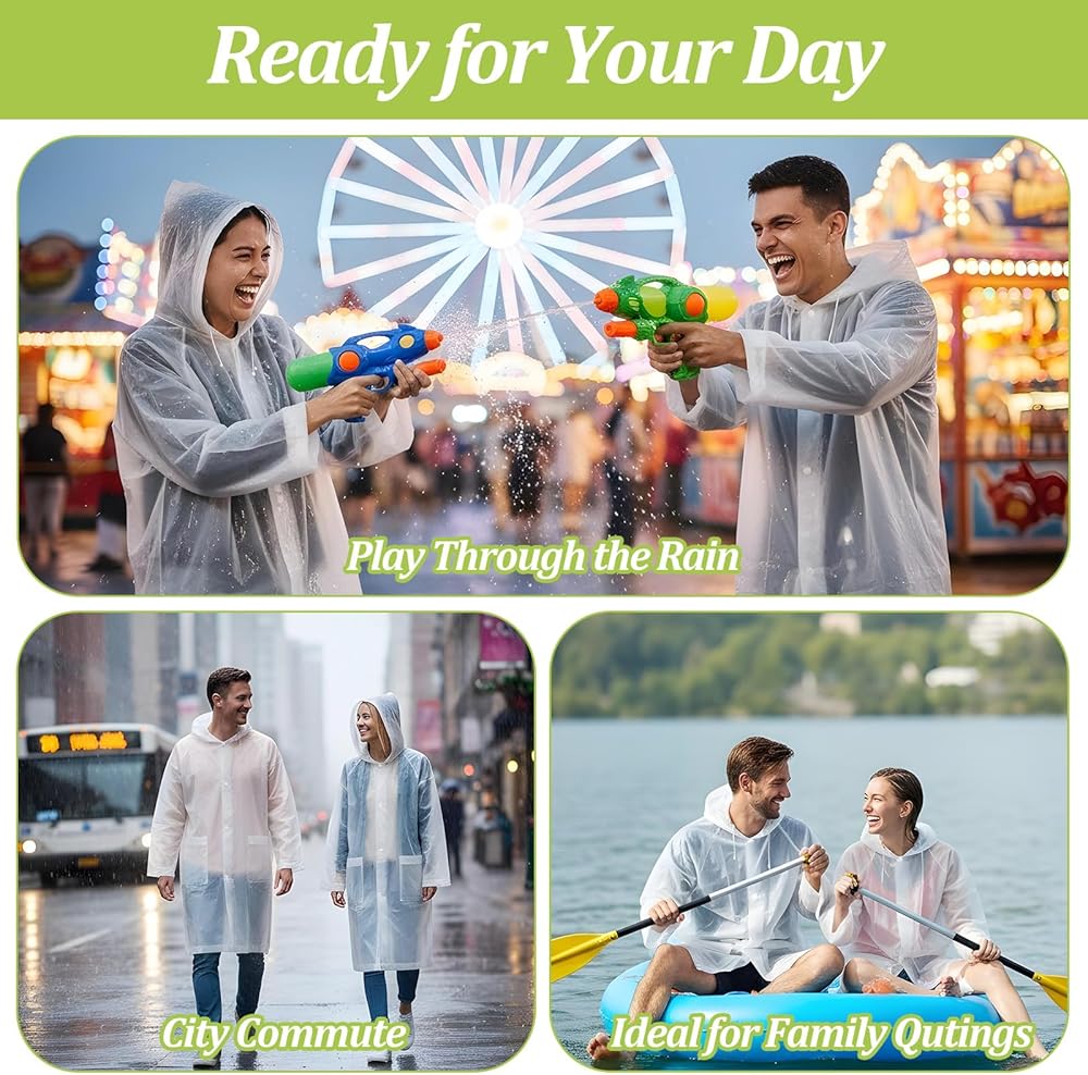 Must-Have for Outdoor Activities: You will receive 15 packs of travel raincoat to share with friends and family to enjoy a rainy trip together. Our foldable rain poncho for travel is ideal for all seasons and a variety of occasions—whether at theme parks, outdoor concerts, sports events, hiking, fishing, commuting, or traveling on rainy days.