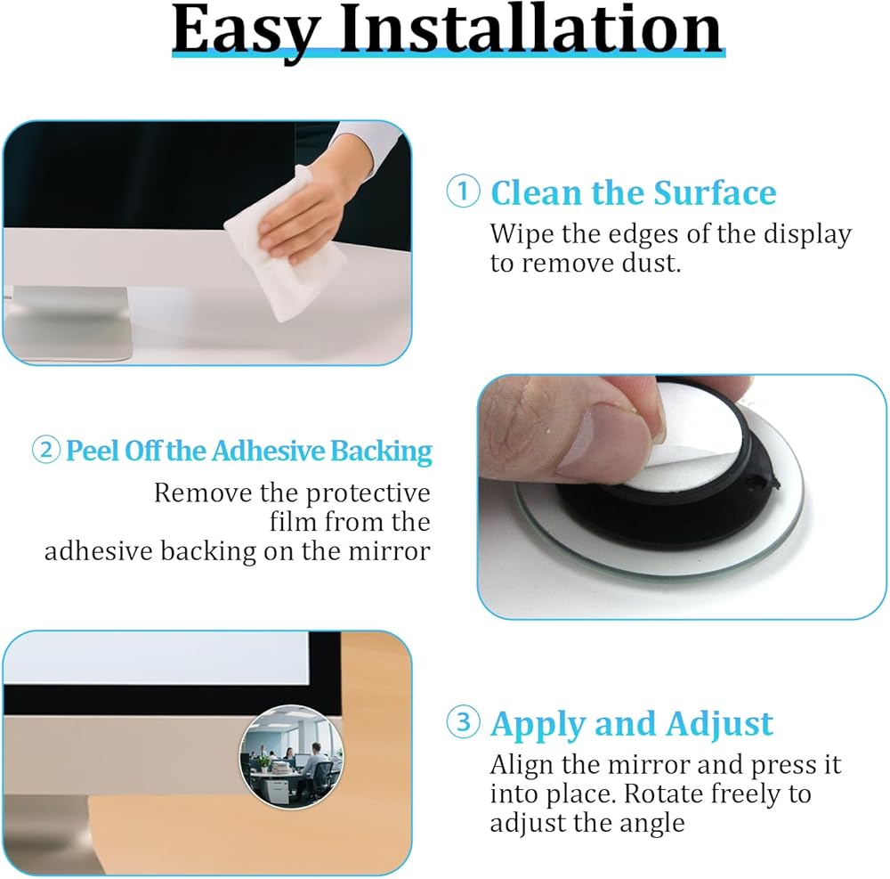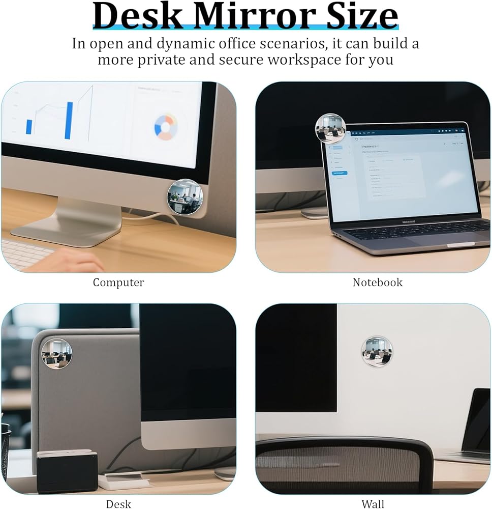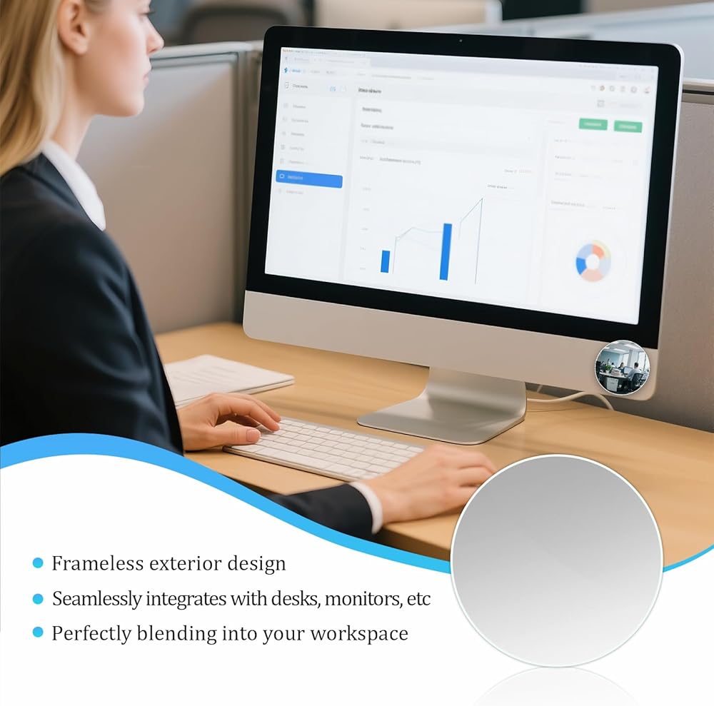 This dual-mirror set, each mirror measuring 1.97 inches in diameter, effectively enhances your workspace awareness. Featuring a sleek silver finish, these minimalist rearview mirrors mount effortlessly on computer monitors or partitions, allowing you to discreetly monitor your surroundings while staying focused on your work.