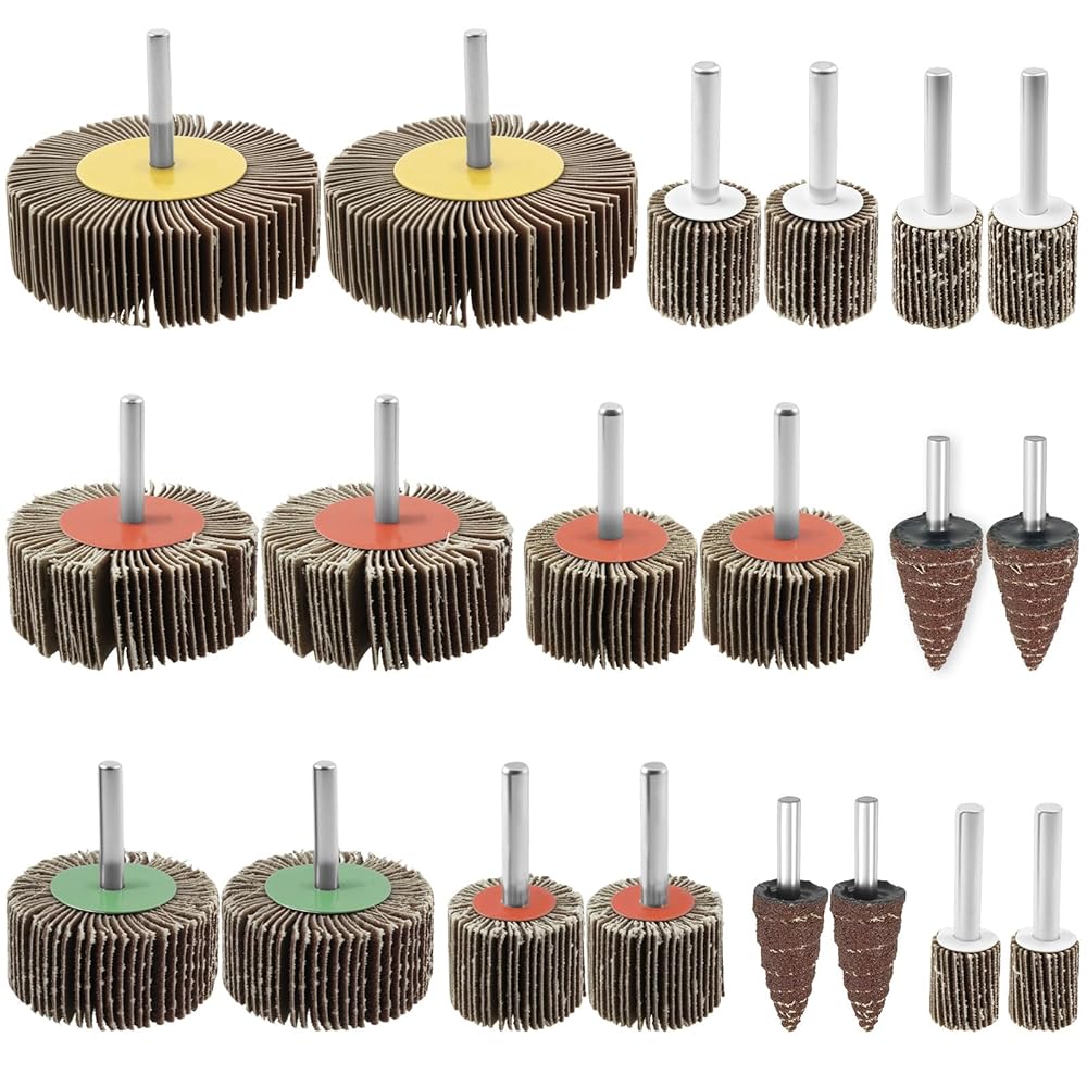 • ⛑️T-SHAPE DESIGN FOR HIGH EFFICIENCY: With a T-shape design, the flap wheel has high durability and tough bristles. It shortens polishing time significantly, effectively improving your work efficiency and saving your valuable time.