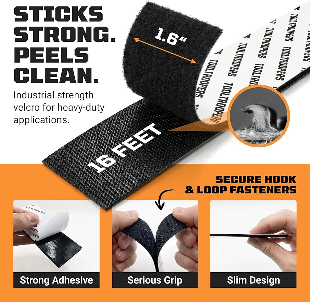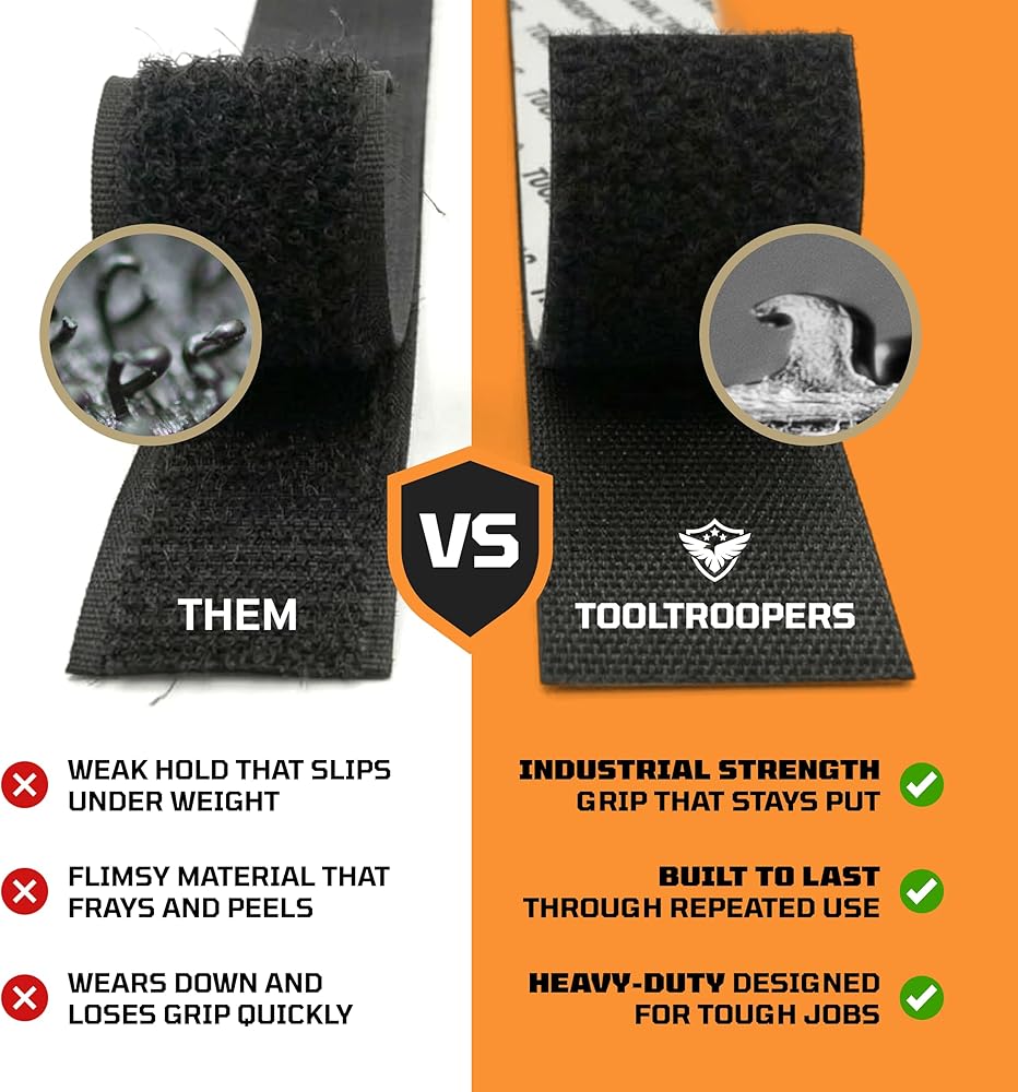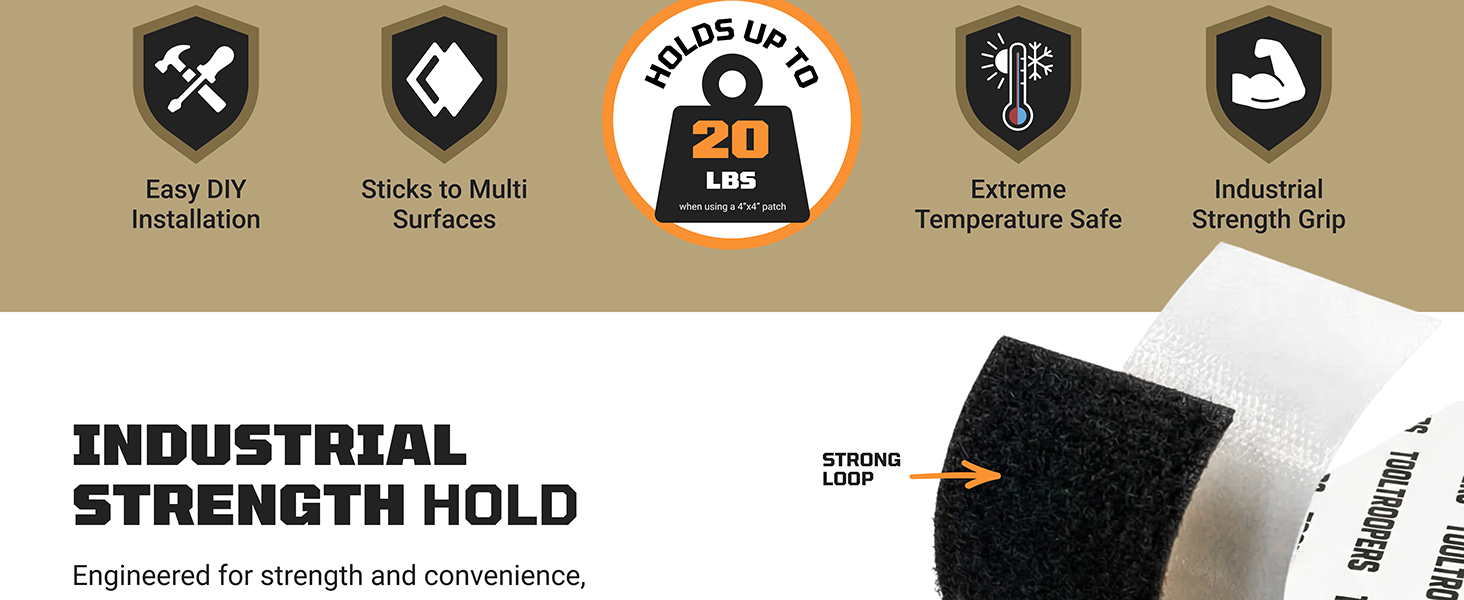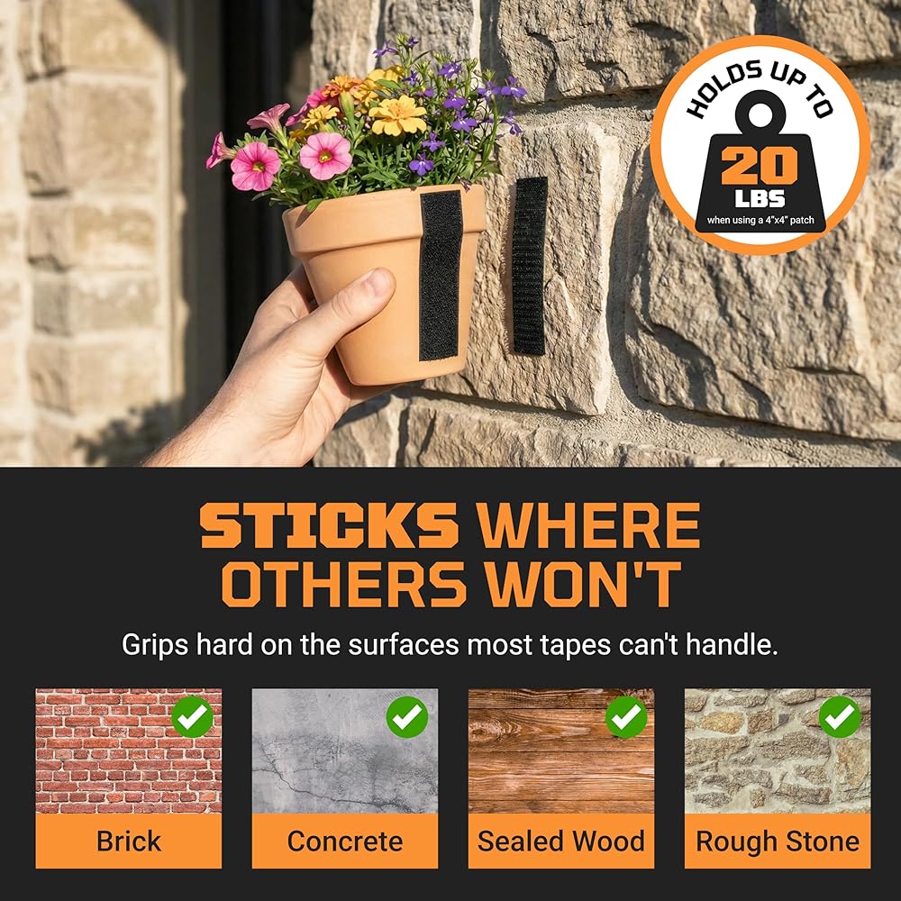 شريط تثبيت لاصق وحلقة شديد التحمل من TOOLTROOPERS - مصمم للاستخدام الخارجي الشديد مع لاصق قوي للغاية ومقاوم للأشعة فوق البنفسجية ومقاوم للطقس - يحمل ما يصل إلى 20 رطلًا على الطوب والخرسانة والأسطح الخشنة الأخرى - لفة بطول 16 قدمًا