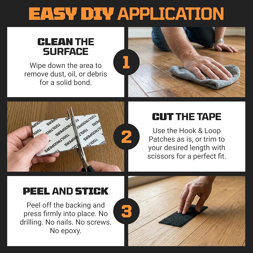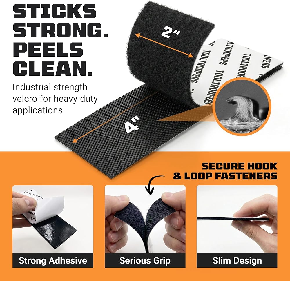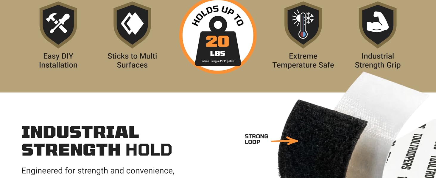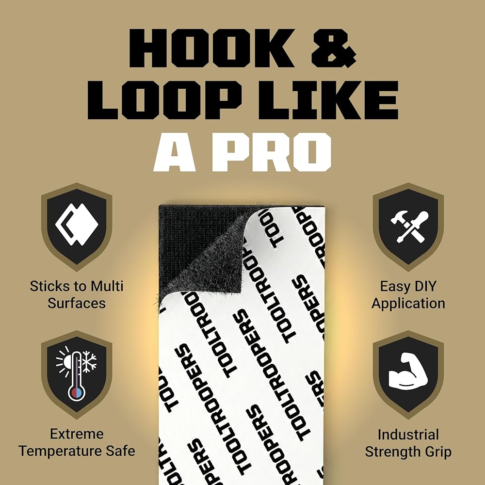 • اضبطه. التمسك بها. انس الأمر - عندما تقوم بتركيب شيء ما، يجب أن يبقى هناك. فترة. لهذا السبب يستخدم شريط التثبيت ذو الخطاف والحلقة من TOOLTROOPERS دعامة لاصقة قوية ونظام تثبيت قابل لإعادة الإغلاق يعمل على تثبيت مشروعك في مكانه ويبقيه في مكانه. لا الانزلاق. لا ترهل. لا إعادة المهمة. ألصقه، واضغط عليه، وثق به ليصمد بقوة يومًا بعد يوم.