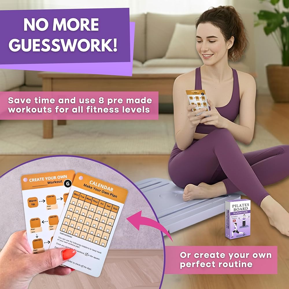 • تمارين لوح البيلاتيس بدون جهد - تدرب مع مصلح البيلاتس الصغير الخاص بك دون تخمين. توفر هذه البطاقات جميع الإرشادات الأساسية لجلسات فعالة، سواء كنت تستخدم لوح إصلاح البيلاتس بمفرده أو مع أشرطة المقاومة والمقابض. متوافقة مع معظم ألواح البيلاتيس للتمارين المنزلية، فهي تجعل التدريب ممتعًا ومحفزًا وجذابًا.
