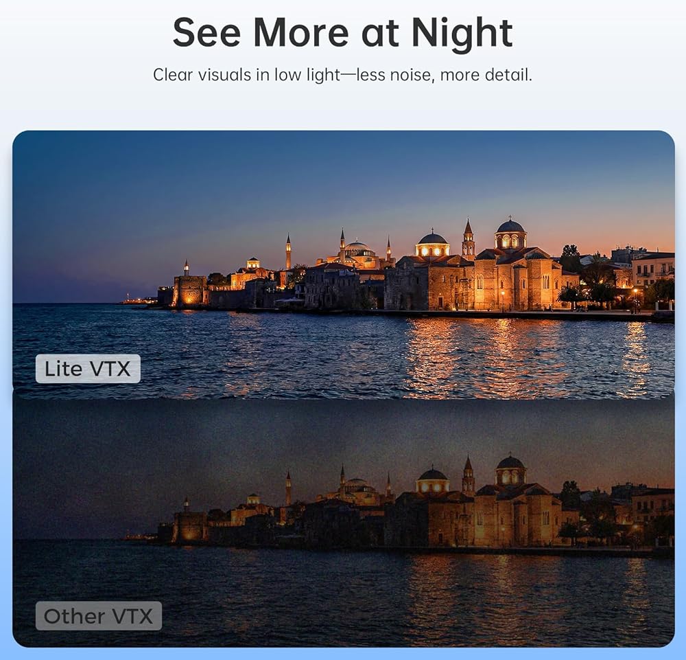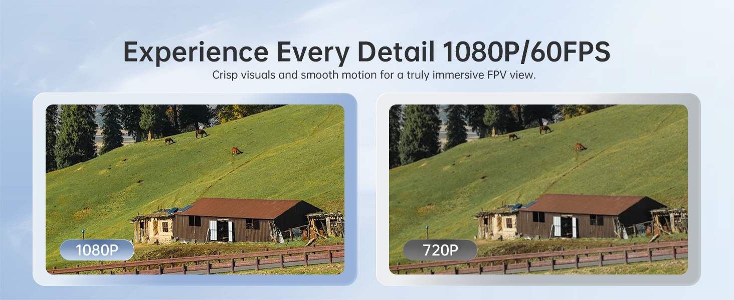 • زمن استجابة منخفض للغاية يبلغ 35 مللي ثانية: استمتع بمرئيات سريعة الاستجابة مع زمن استجابة يبلغ 35 مللي ثانية فقط، مما يقلل التأخير ويمنع التسرب للحصول على تجربة FPV أكثر غامرة. تساعد ردود الفعل السلسة والمتأخرة الطيارين الجدد على بناء الثقة بسرعة أكبر