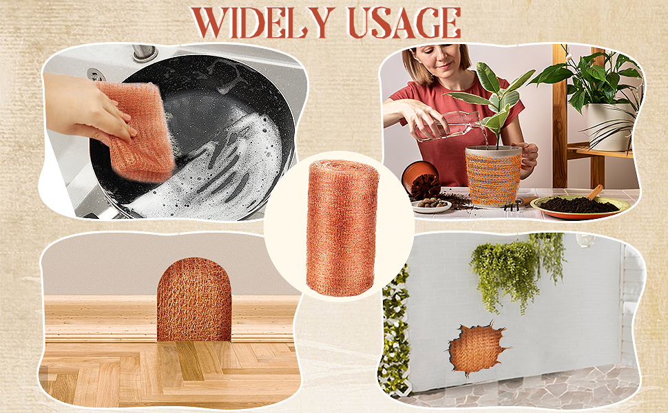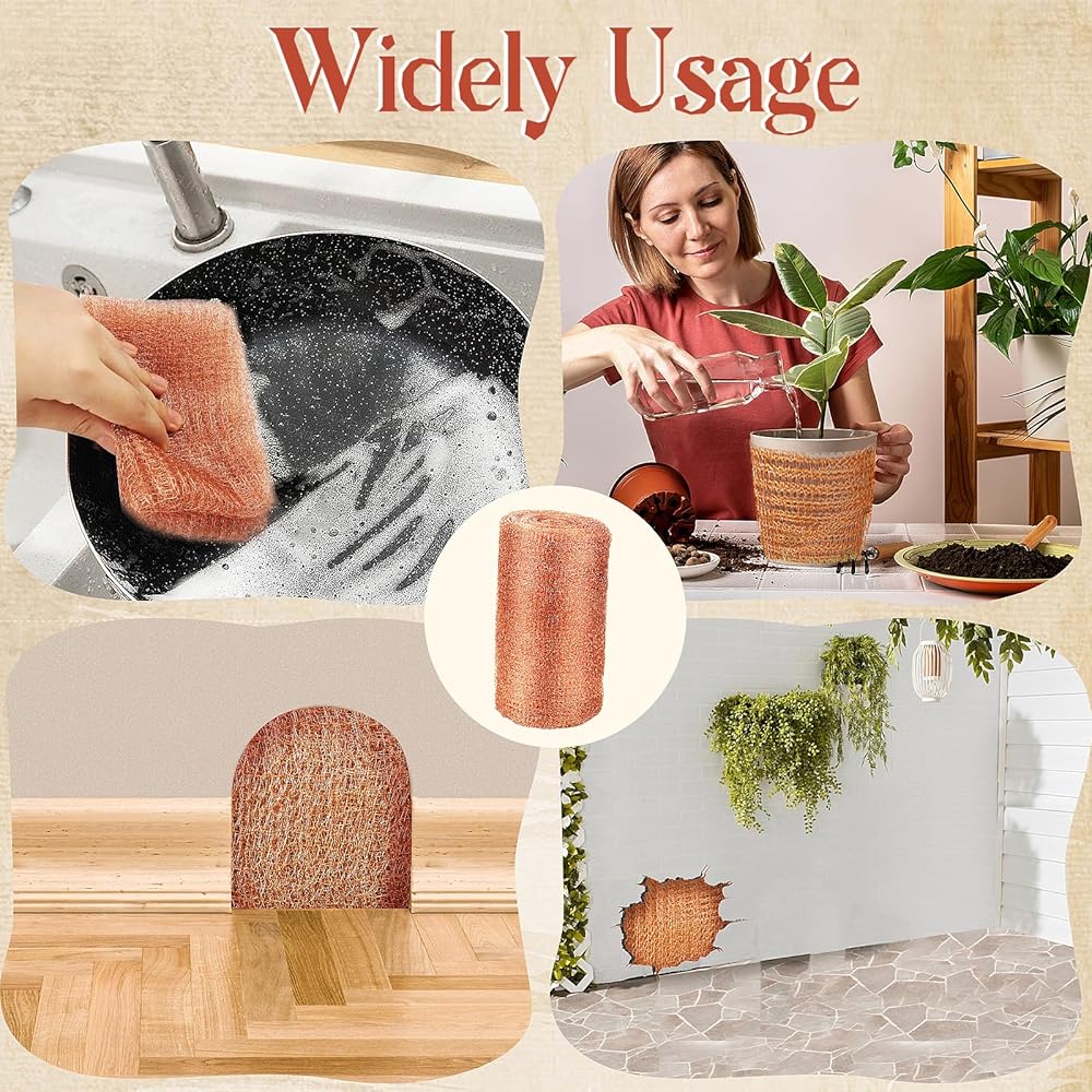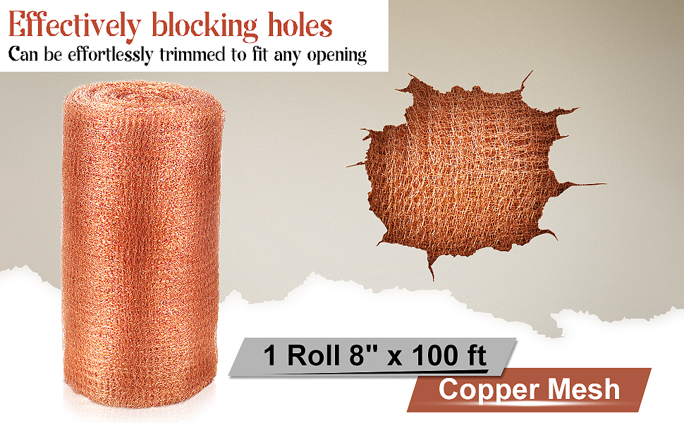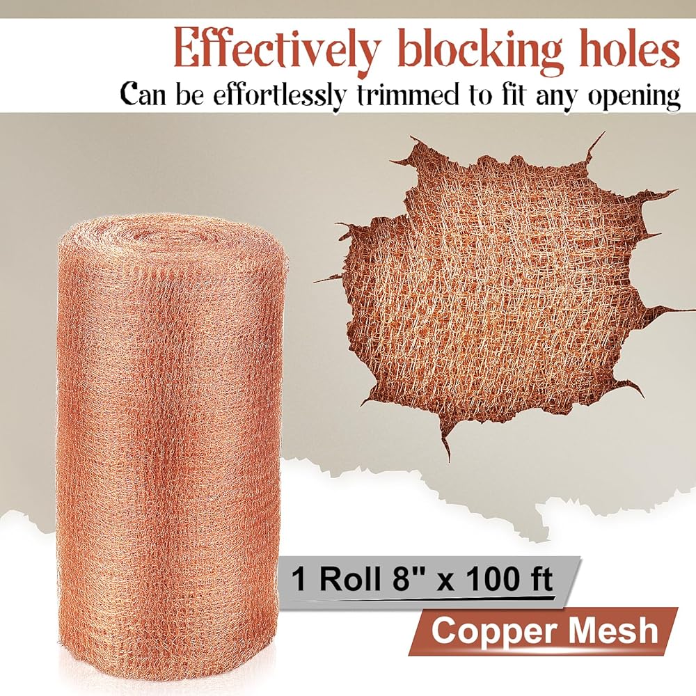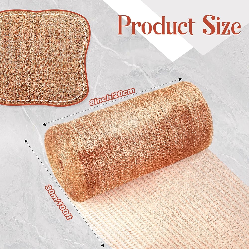 شبكة نحاسية مقاس 8 بوصات × 100 قدم للتحكم في القوارض، صوف نحاسي مقاوم للصدأ للبزاقات والخفافيش والقواقع والطيور، وحشو الفتحات بنفسك، ومانع الفجوة للبستنة والاستخدام المنزلي