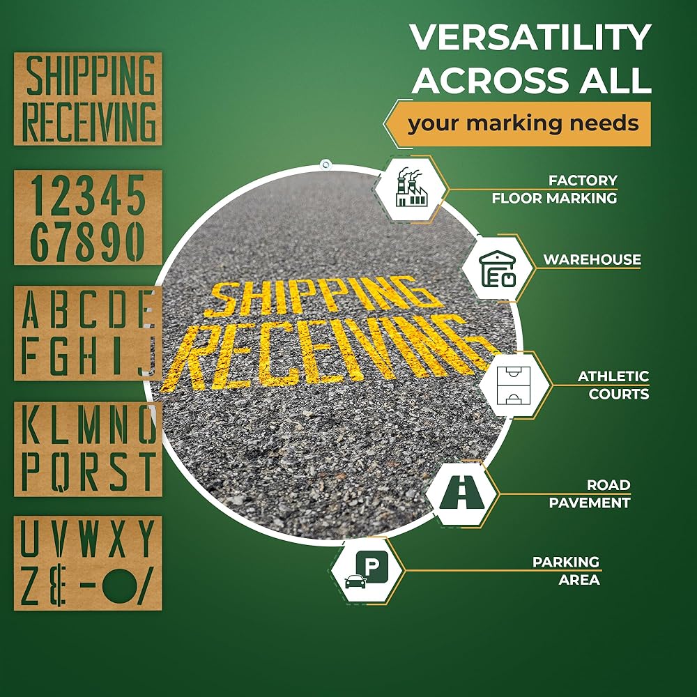 استخدامات متعددة: تعتبر استنسلاتنا متعددة الاستخدامات لمواقف السيارات وعلامات الرصيف مثالية لمختلف التطبيقات، بما في ذلك الملاعب الرياضية وأرضيات المصنع والمزيد. سواء أكان ذلك استنسل الرصيف أو استنسل الممرات الكبيرة، فإن منتجاتنا تتكيف مع احتياجات وضع العلامات المؤقتة والدائمة.