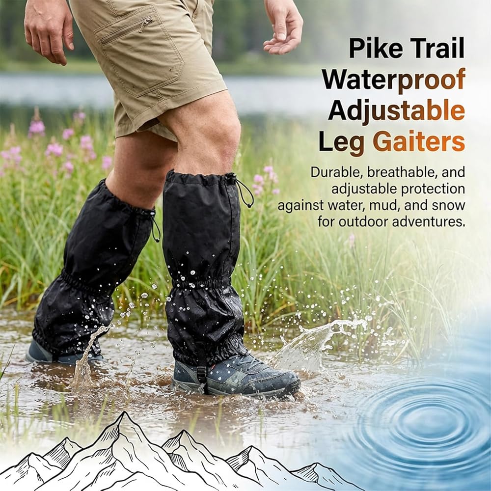 1Pair Adjustable Leg Gaiters - Lightweight Waterproof Sandproof Anti-Mosquito Leg Guards | Gators for Hiking Boots, Men & Women, Hiking Hunting Trekking Fishing Essentials