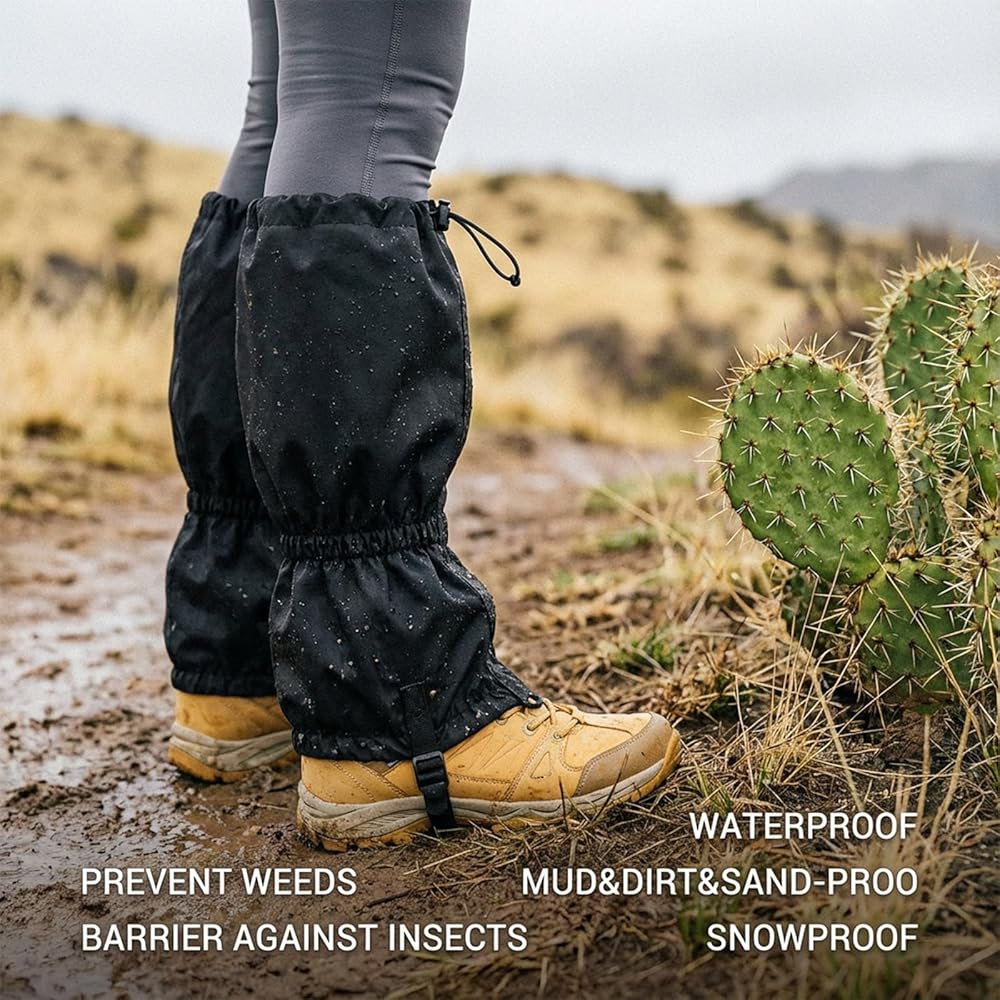 【Comprehensive 3-in-1 Protection】 These leg gaiters create a secure seal around your boots and calves, effectively blocking out water, mud, sand, pebbles, ticks, and mosquitos. Enjoy worry-free adventures in wet, dusty, or bug-infested environments - protects lower legs and hiking boots from damage in harsh outdoor environments