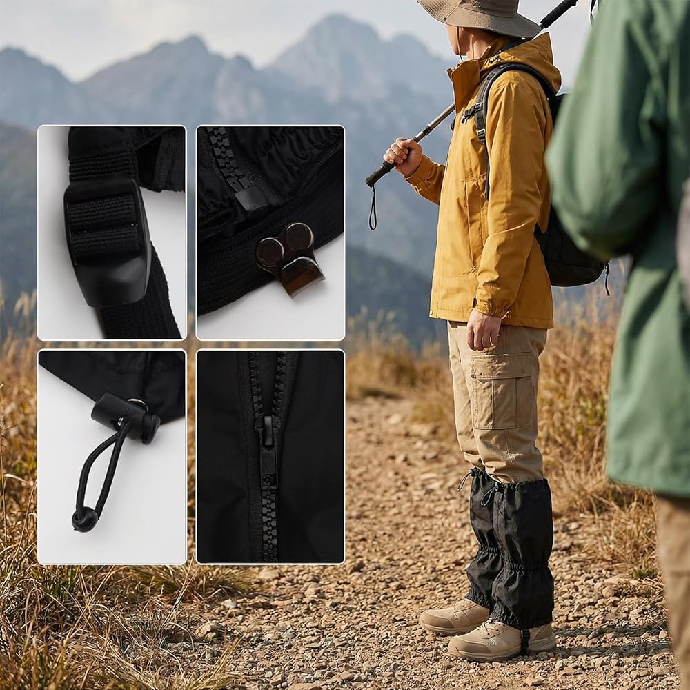 【Lightweight & Packable Design】 The gators for hiking boots is Made from lightweight yet tough materials, these gaiters add minimal weight to your gear. When not in use, they roll up compactly, easily stowing in a backpack pocket—a must-have essential that's always ready.