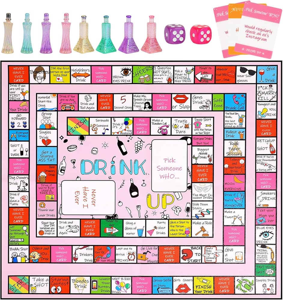 ألعاب الشرب لحفلات البالغين، ألعاب حفلات العزوبية ذات حصيرة جلدية ممتعة أكبر للكبار، لعبة الحفلات الليلية للفتيات لعمر 21+، 2-8 لاعبين (وردي)