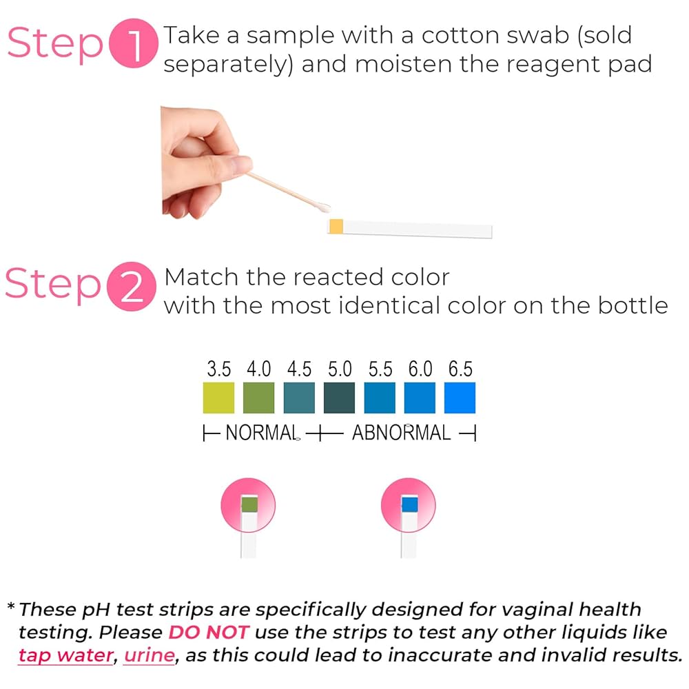 SPECIFIC USAGE GUIDELINE: These strips are intended solely for vaginal pH testing and should not be used for urinary, ovulation monitoring, or under conditions like menstruation, recent intercourse, or vaginal douching to avoid inaccurate results.