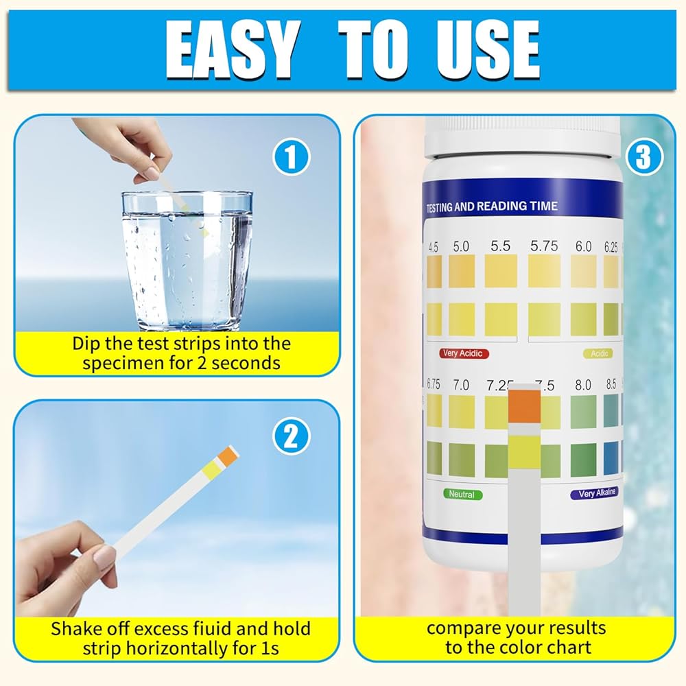 Easy and Quick Results: Dip the strip into your sample, and after a few seconds, compare it with the color chart for immediate results.