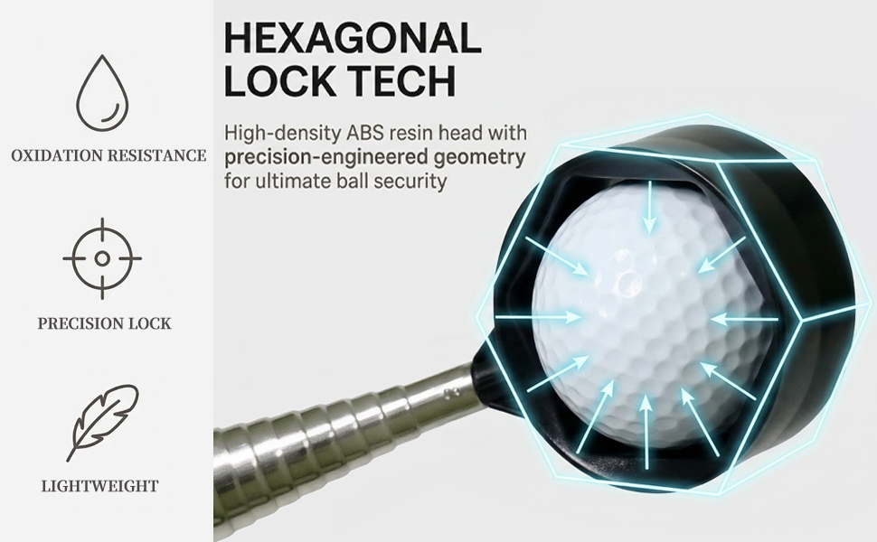 رأس عالي القوة لقبضة آمنة - يضمن رأس النايلون المقوى إمساكًا قويًا بكل كرة، حتى في الماء أو العشب السميك. يمنع السطح المزخرف الانزلاق، لذلك تفقد الكرة المستردة