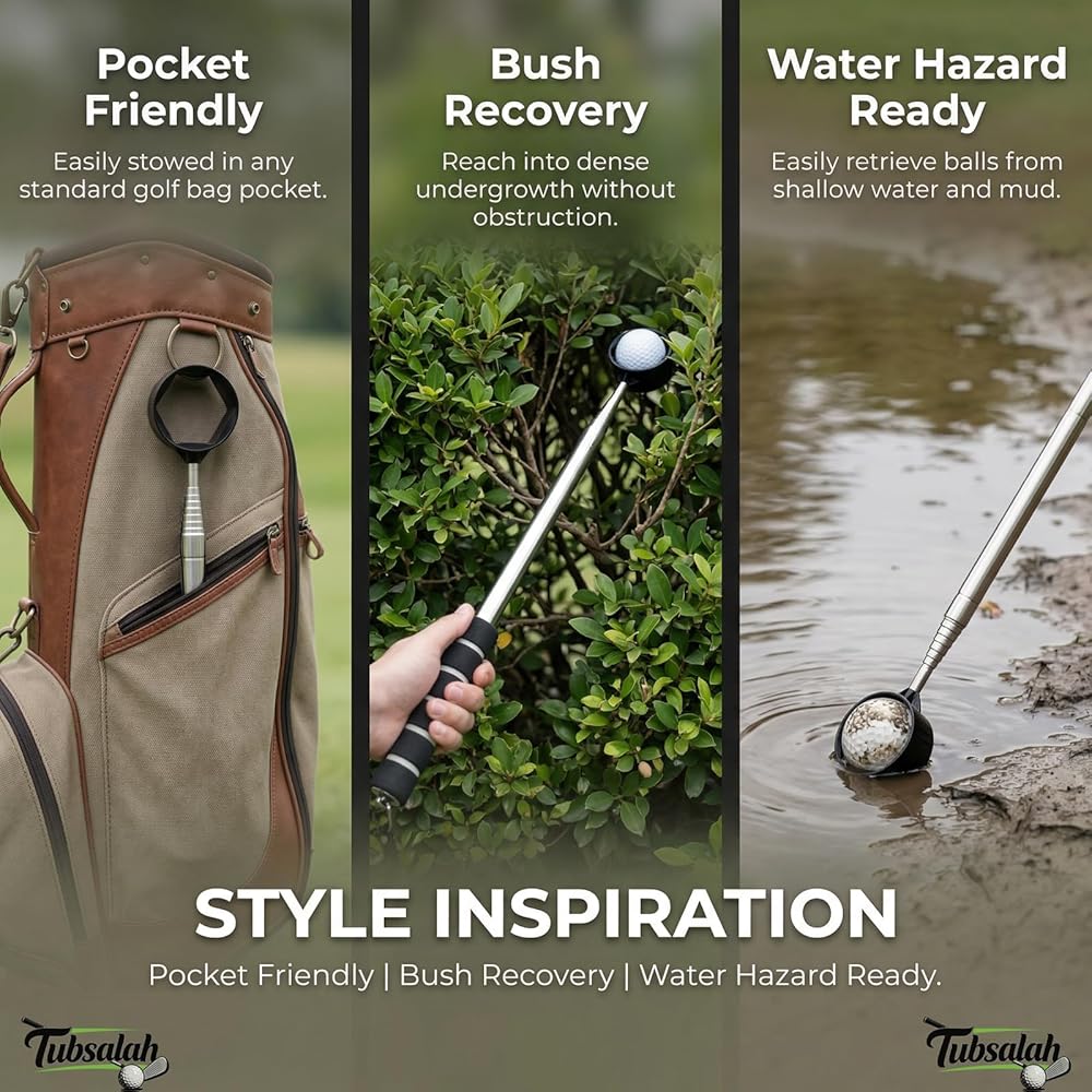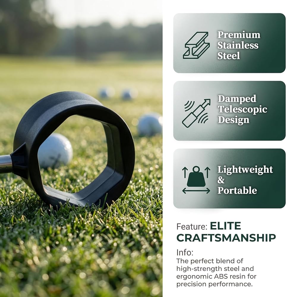 التقاط مزدوج الجوانب يعمل بالضغط - يتميز مسترد كرة الجولف التلسكوبي الخاص بنا بتصميم ذكي مزدوج الجوانب يتكيف مع أي تضاريس، حتى في الماء أو العشب السميك، ما عليك سوى الضغط لأسفل لتأمين الكرة - بدون الانحناء أو المعاناة!