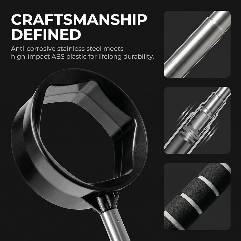 عمود تلسكوبي معزز من الفولاذ المقاوم للصدأ - مصنوع من الفولاذ السميك بنسبة 30% للحصول على قوة فائقة ضد الانحناء، كما أن مسترد كرة الجولف الخاص بنا للمياه يتحمل الظروف القاسية بينما يمتد بسلاسة لتحقيق أقصى قدر من الوصول.