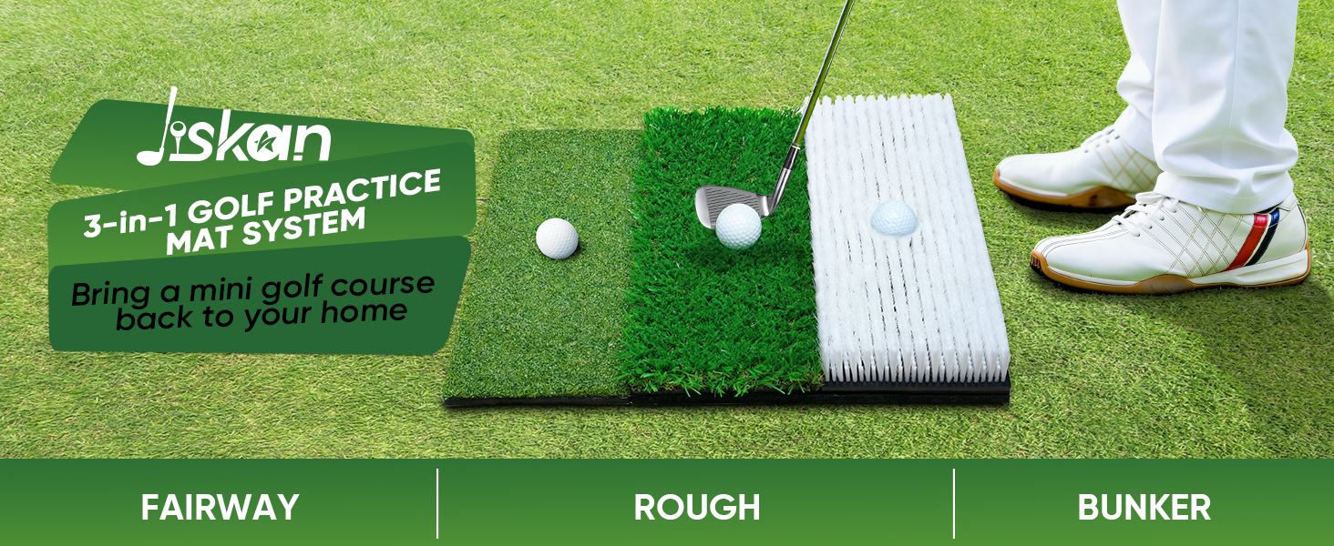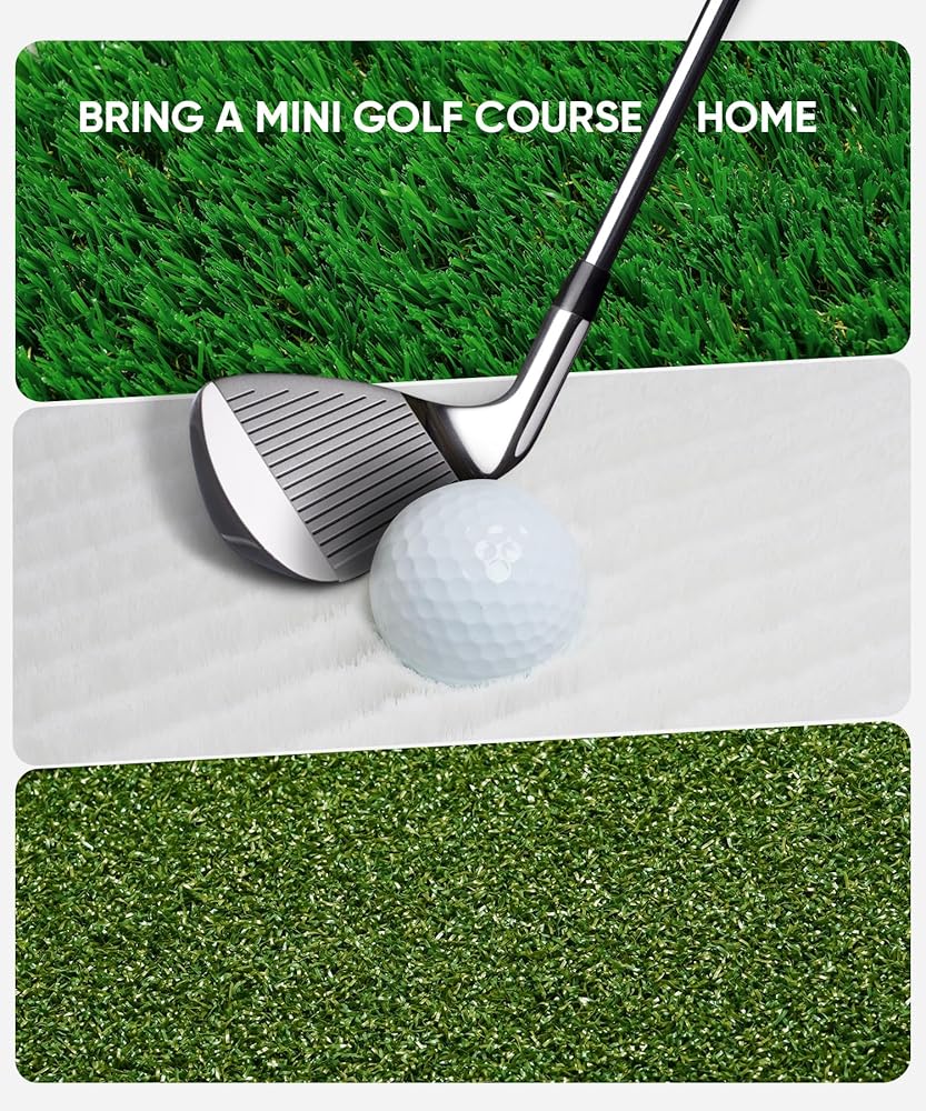 • 【نظام حصيرة الجولف الاحترافية والكاملة】يتضمن نظام بساط الجولف الاصطناعي 3 في 1 الأكثر شمولاً في السوق سجادة مخبأة وحصيرة للممرات وحصيرة خشنة. باستخدامه، يمكنك بسهولة ممارسة كل نوع من أنواع ضربات الجولف التي تحتاجها - وهو ما يعني بشكل أساسي إحضار ملعب جولف صغير إلى منزلك للتدريب.