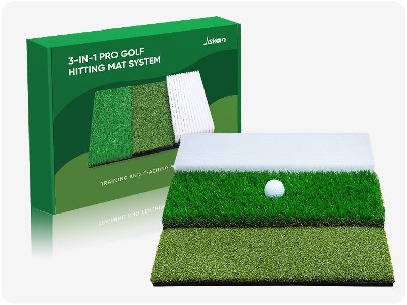يتضمن نظام سجادة ضرب الجولف مخبأ وممرًا خشنًا وبساطًا قابلاً للاستبدال، ومعدات تدريب كاملة، وإكسسوارات مساعدة لمدرب التأرجح الداخلي والخارجي للرجال