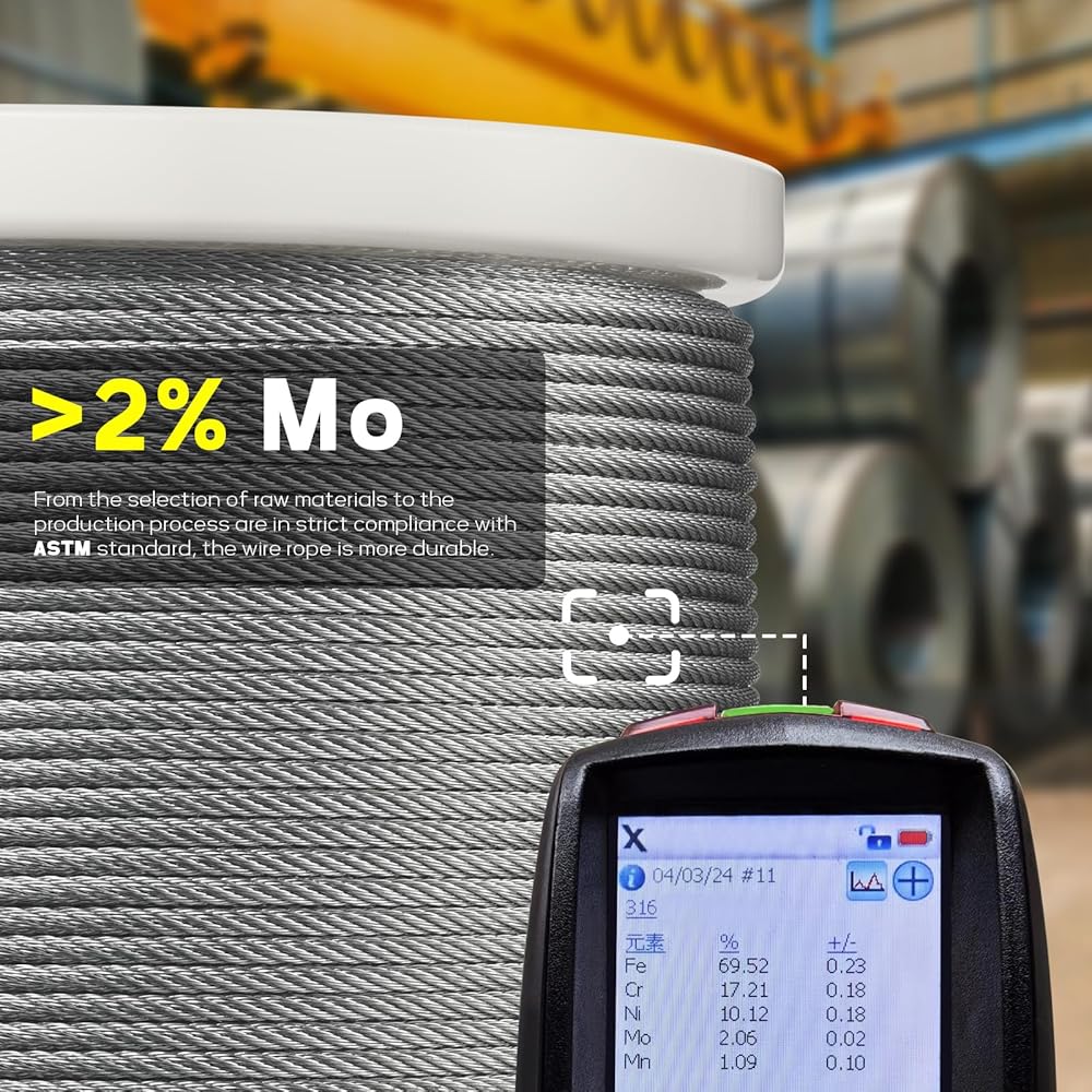 الفولاذ المقاوم للصدأ 316 عالي الجودة: مصنوع من الفولاذ المقاوم للصدأ بدرجة 316 البحري القياسي ASTM مع 2% من الموليبدينوم، يتميز الكابل الفولاذي الخاص بنا بمقاومة ممتازة للتآكل ومقاومة للصدأ، مما يضمن متانة من الدرجة الأولى حتى في المناطق الساحلية عالية الملح والبيئات الغنية بالكلور مثل حمامات السباحة.