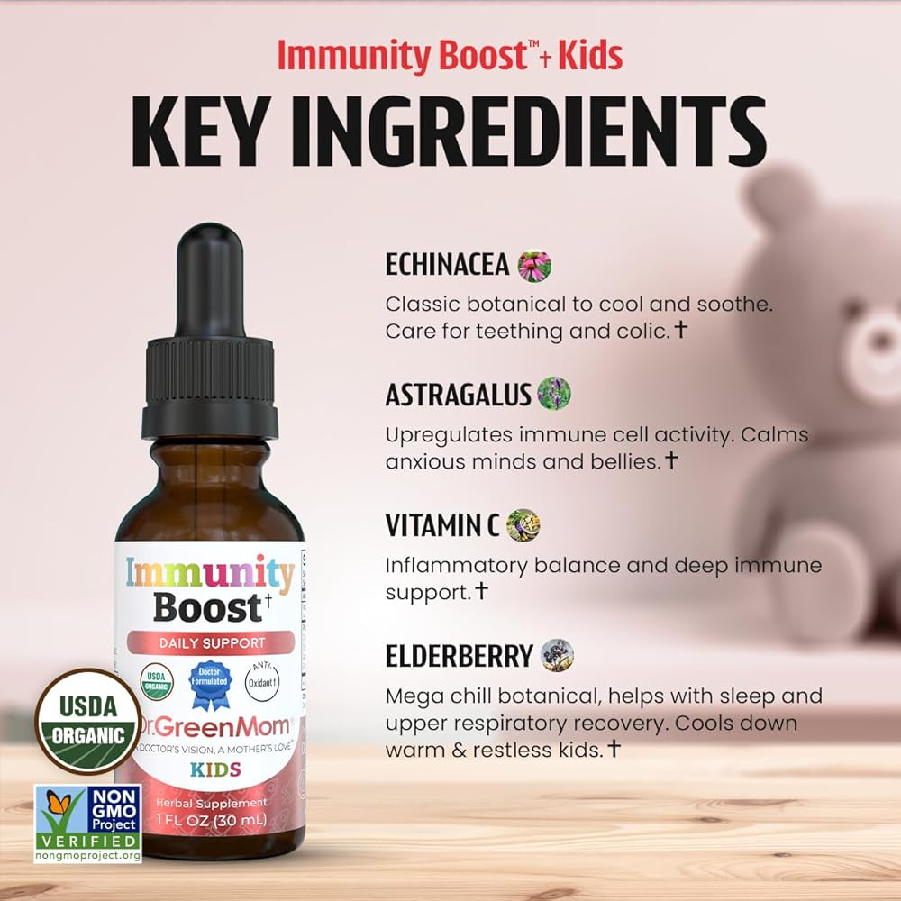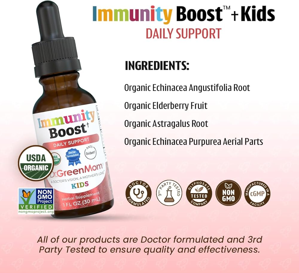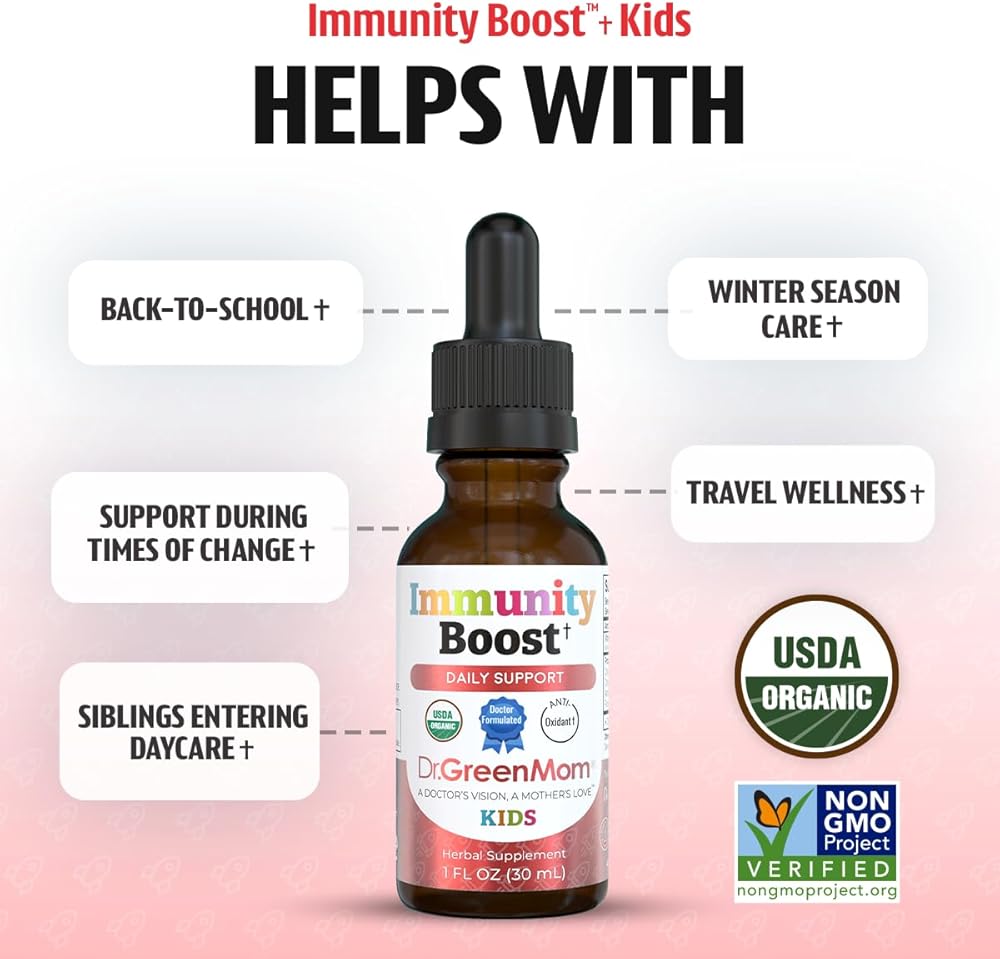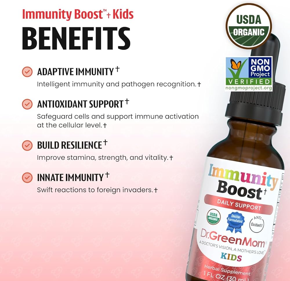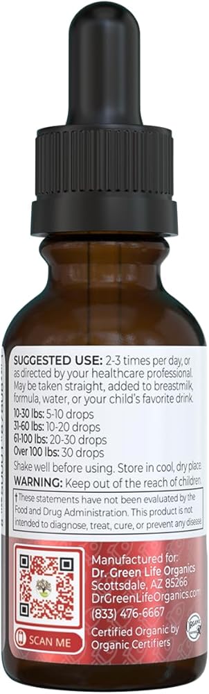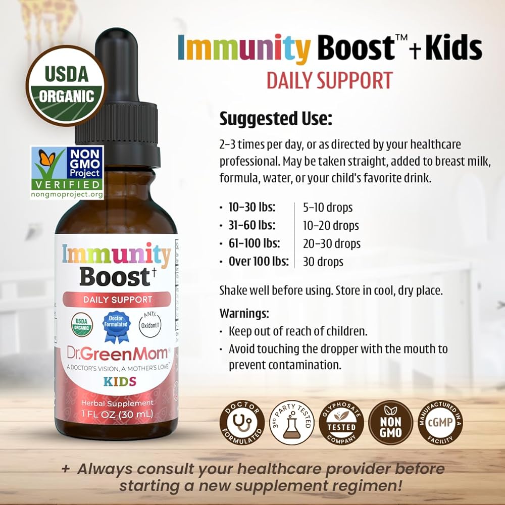 دعم مناعة الأطفال: يمكن إعطاء قطرات تعزيز المناعة العضوية التابعة لوزارة الزراعة الأمريكية مباشرة في الفم، أو في العصير أو الماء، مما يجعلها مكملاً مناسبًا للمناعة لتقوية الدفاعات لدى الأطفال من جميع الأعمار.