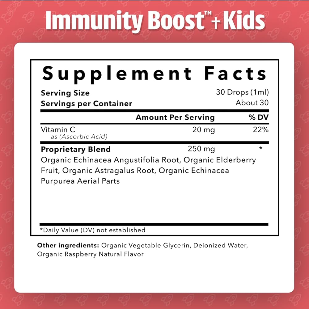 قطرات دعم المناعة السائلة: لطيفة بما يكفي للاستخدام على المدى الطويل لدى الأطفال الأصحاء للدفاع المناعي طوال "موسم المرض"، وأثناء السفر، وعندما تنتشر حشرات الرعاية النهارية، وفي أي وقت آخر يحتاج فيه الجهاز المناعي إلى الارتقاء إلى مستوى المناسبة!
