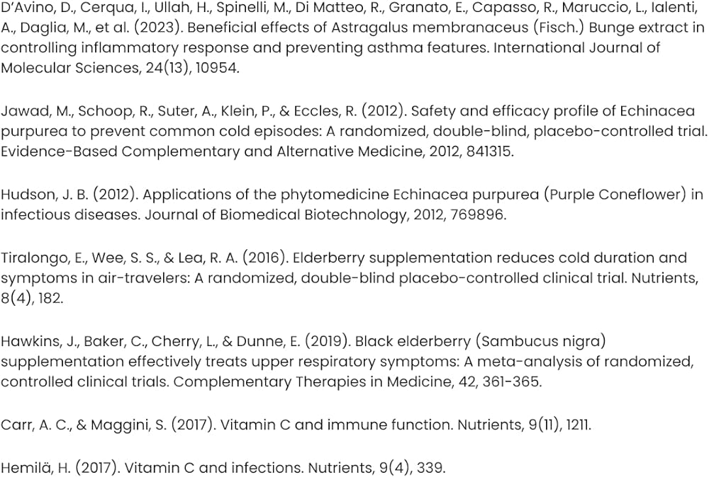 تم تركيبه بواسطة طبيب من أعشاب عضوية تابعة لوزارة الزراعة الأمريكية: جذر إشنسا أنجوستيفوليا العضوي، وفاكهة البلسان العضوية، وجذور استراغالوس العضوية، والأجزاء الهوائية من إشنسا بوربوريا العضوية تجتمع معًا بشكل جميل لتوفير تعزيز سريع للمناعة.