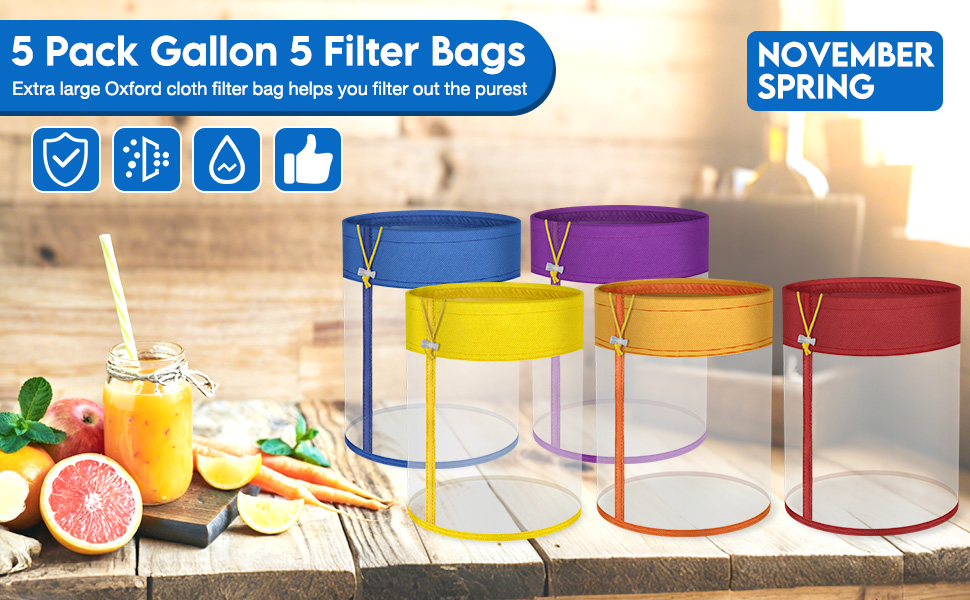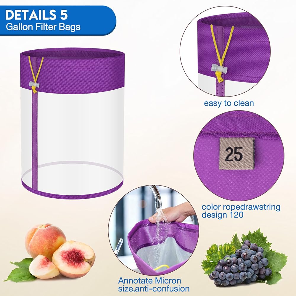 أكياس مصفاة شبكية سعة 5 جالون - مجموعة مكونة من 5 عبوات مع أحجام مرشحات متعددة الأغراض مع شاشة ضغط ممتازة - أكياس شبكية من النايلون قابلة لإعادة الاستخدام للخضروات المائية والشاي العشبي وترشيح الثلج