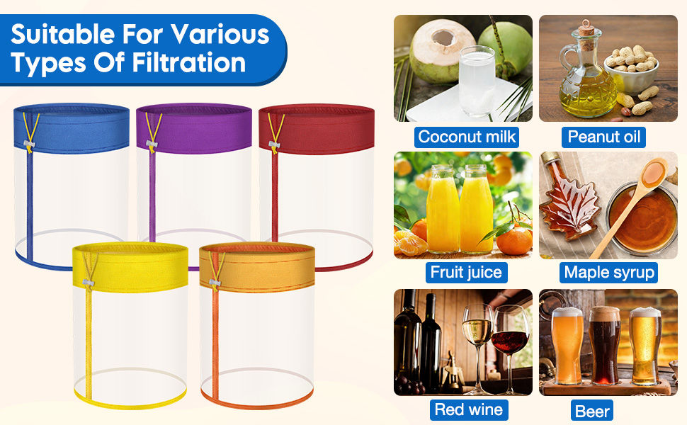 نايلون شبكي بالكامل للحصول على نظافة وترشيح أسرع: مصنوعة من نايلون صالح للطعام وخالي من البيسفينول A، أكياس الفلتر هذه عديمة الرائحة وجيدة التهوية بالكامل. يسمح الهيكل الشبكي بالكامل بتصريف أسرع من الأكياس القماشية، مما يساعد على تدفق السوائل بسلاسة مع التقاط الجزيئات الدقيقة بشكل أكثر فعالية.