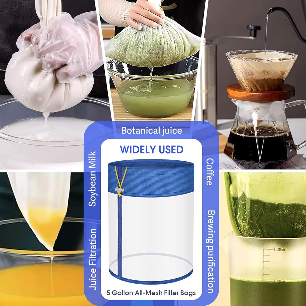🍵 أكياس فلتر متعددة الاستخدامات للاستخدام في المنزل والحديقة: مثالية للخضروات المائية، وترشيح شاي يربا ميت، والعصير، والنبيذ، وتخمير البيرة، واستخراج القهوة، وإجهاد العسل. تتكيف أكياس الفقاعات هذه بسهولة مع تطبيقات المطبخ والحديقة، مما يوفر المرونة دون تعقيد