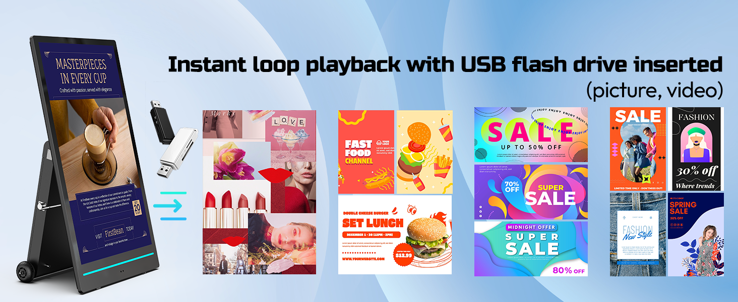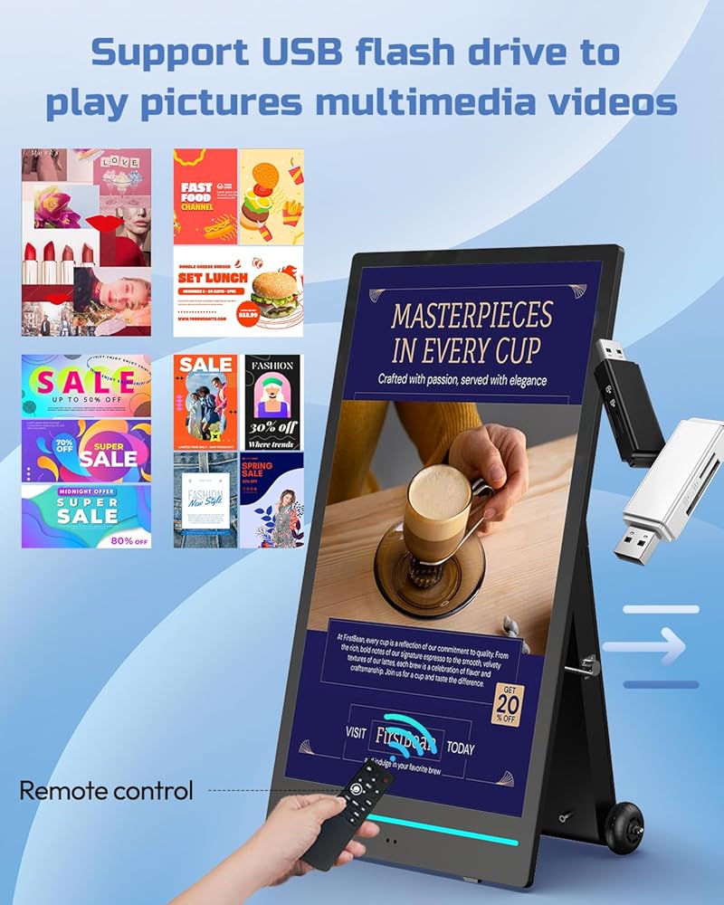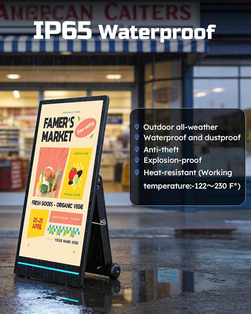 【ملحقات محمولة وكاملة】عجلات ومسند للذراع لسهولة الحركة، مناسب للمركز التجاري والمعارض والترويج في الهواء الطلق؛ الملحقات القياسية الكاملة متضمنة، جاهزة للاستخدام.