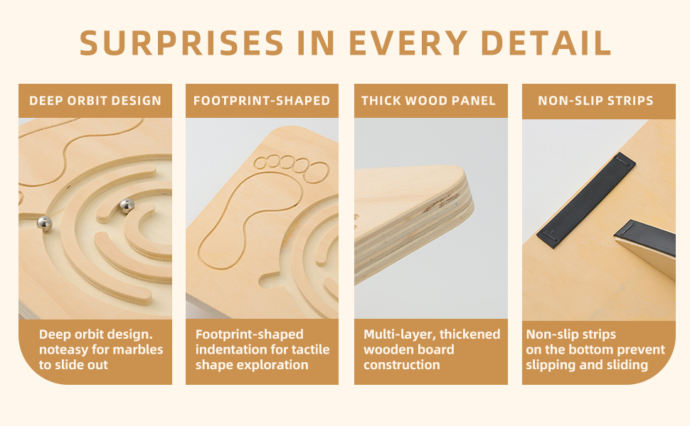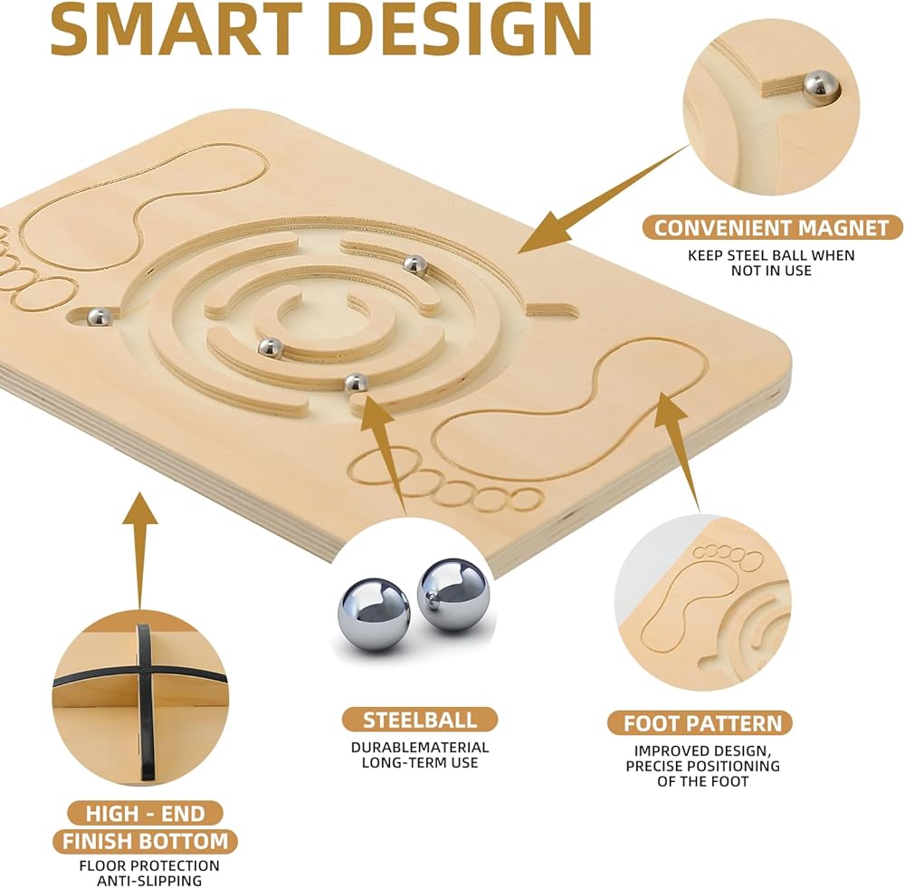 تصميم متين وآمن: لوح التوازن المتاهة للأطفال مصنوع من مواد عالية الجودة، يدعم ما يصل إلى 350 رطلاً، مع سطح مضاد للانزلاق ووسادات حماية لمنع تلف الأرضية، قاعدة ثابتة وغير قابلة للانزلاق يمكن أن تضمن السلامة أثناء ممارسة التمارين.