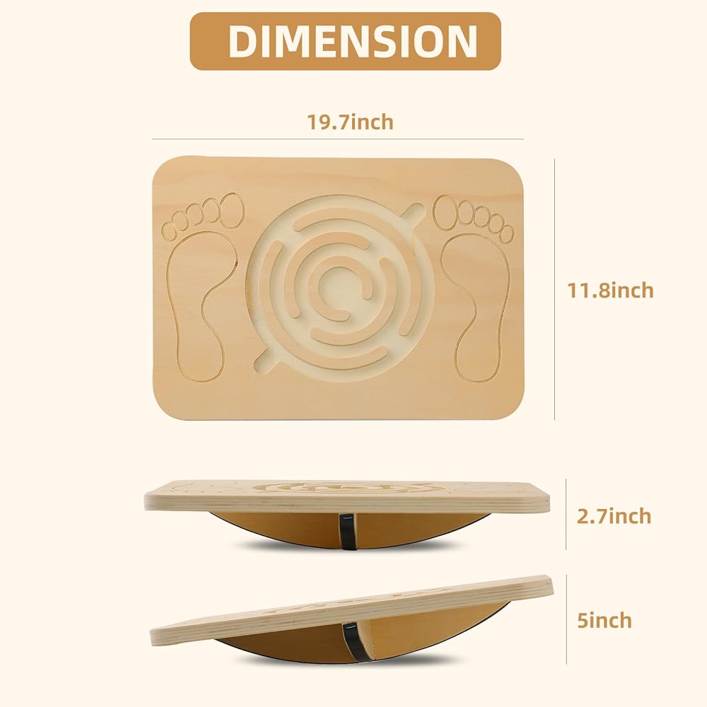 لوح التوازن المتاهة للأطفال: 17.5 بوصة طول × 12 بوصة عرض × 3 بوصة ارتفاع؛ يأتي التصميم المكون من قطعة واحدة مجمعًا بالكامل ويدعم حاجة الجسم الطبيعية للحركة، ويشغل قلبك، حيث يستخدمون الخصر والبطن والأطراف لتأرجح اللوحة، وهذا سيحسن التنسيق والتوازن بين الأطراف تدريجيًا.
