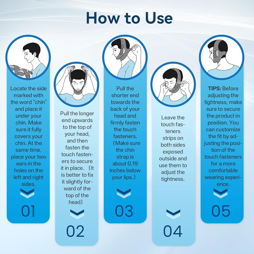 حزام ذقن للنوم مضاد للشخير حزام ذقن مرن للبالغين، أجهزة مضادة للشخير قابلة للتنفس ومتينة لسدادة الشخير