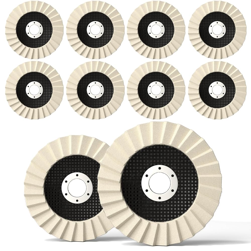 10 عبوات من عجلات تلميع الصوف لطاحونة الزوايا - مجموعة أقراص تلميع مقاس 4-1/2 بوصة × 7/8 بوصة للمعادن والفولاذ المقاوم للصدأ والألومنيوم والرخام وترميم سطح السيارة