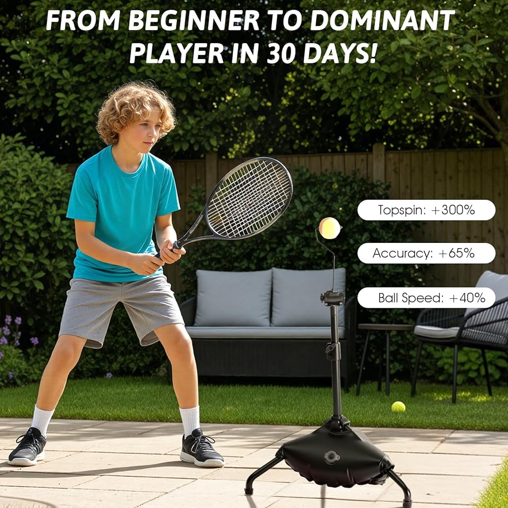 تدريب التنس الفردي - لا حاجة للحجز! لا يوجد شريك مطلوب! لا مزيد من مطاردة الكرات! يجلب مدرب التنس الاحترافي هذا تدريبًا على مستوى النخبة إلى منزلك، ويعمل في الوقت نفسه على تحسين الدقة والقوة وتقنية الدوران العلوي. احصل على تدريب أكثر كفاءة بنسبة 300% - 20 دقيقة فقط يوميًا تعادل ساعتين من وقت المحكمة!