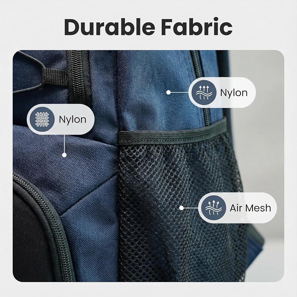 Dedicated Ball Pocket – Holds Size 7 Basketball & Size 5 Soccer Ball: Secure your ball in its own pocket with mesh sides and a zipper. This keeps it from rolling loose in your bag, so it's always organized and ready for the game—no more carrying it separately.